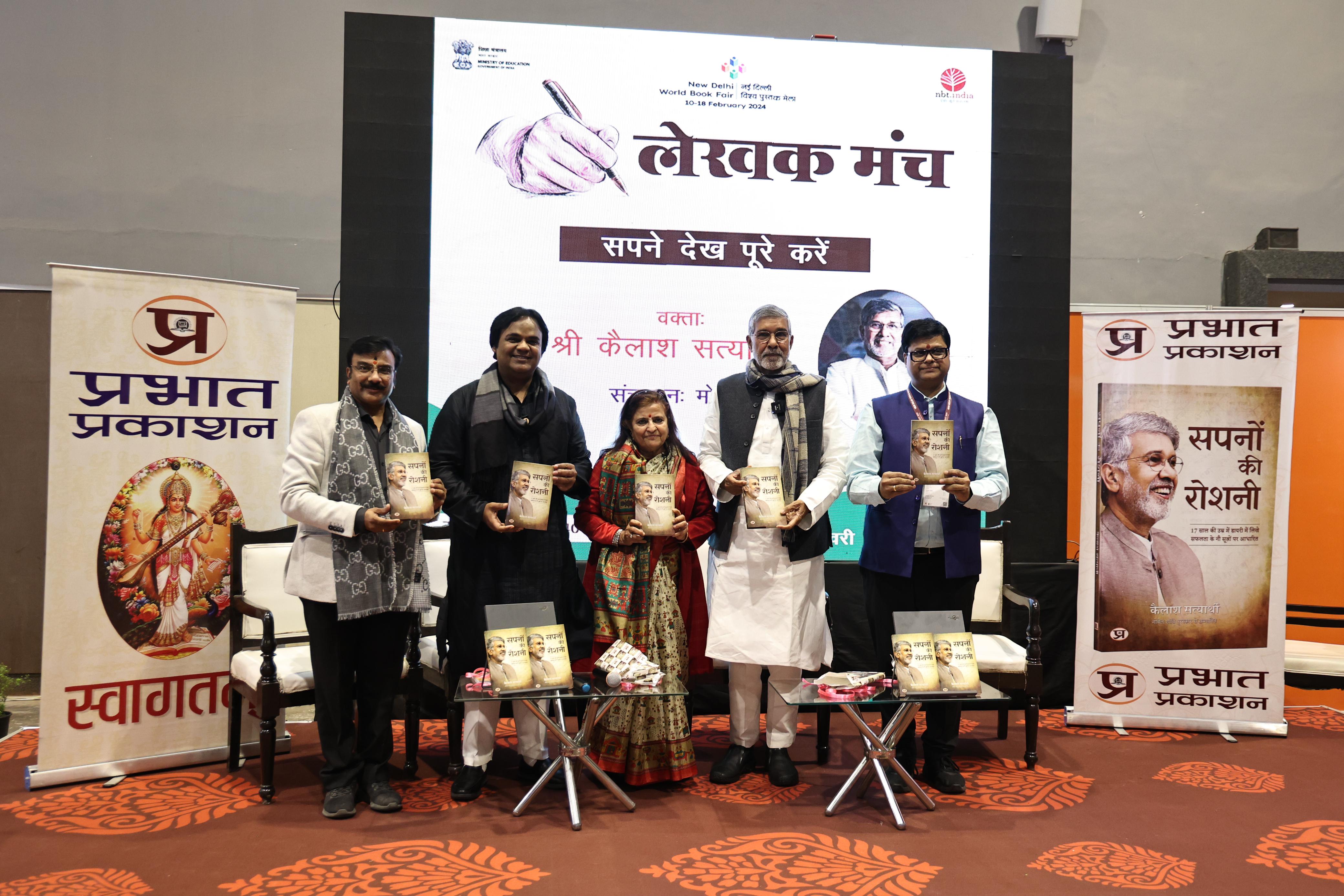 एबीएन सेंट्रल डेस्क (नई दिल्ली)। प्रगति मैदान में चल रहे विश्व पुस्तक मेले में रविवार को नोबेल शांति पुरस्कार से सम्मानित कैलाश सत्यार्थी की प्रभात प्रकाशन से प्रकाशित पुस्तक सपनों की रोशनी का लोकार्पण किया गया। इस अवसर पर प्रख्यात गीतकार एवं कवि आलोक श्रीवास्तव ने भी चर्चा में हिस्सा लिया। सपनों की रोशनी नोबेल विजेता द्वारा 50 साल पहले 17 वर्ष की उम्र में लिखी गई डायरी पर आधारित है जिसे अब उन्होंने किताब की शक्ल में पिरोया है। इस किताब के नौ अध्यायों में सफलता के नौ सूत्र हैं।