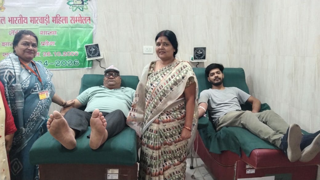 टीम एबीएन, रांची। रक्तदान महादान इससे न बड़ा कोई दान, अपना रक्तदान हर जरूरतमंद का जीवन दान... इसी भावना को ध्यान में रखते हुए अखिल भारतीय मारवाड़ी महिला सम्मेलन ने दिनांक 31मई शुक्रवार को रक्तदान शिविर लगाया। मौके पर हमारी शाखा अध्यक्ष ने ब्लड बैंक की हेड डॉक्टर शिखा प्रिया को पुष्पगुच्छ देकर सम्मानित किया।