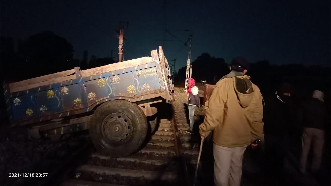कोडरमा। मधुपुर से कोडरमा आ रही पैसेंजर ट्रेन शनिवार की रात्रि दुर्घटनाग्रस्त होने से बच गई। कोडरमा महेशमुंडा के पोल संख्या 1/12-13 के बीच ट्रैक्टर फंस गया और चालक ट्रैक्टर को छोड़ कर भाग गया। जबकि उसका इंजन डाउन लाइन पर चला गया। अगर डाउन लाइन में कोई ट्रेन उस समय होती तो दुर्घटना से इनकार नहीं किया जा सकता। घटना बीती रात्रि 11 बजे की है। घटना की सूचना मिलते ही रेलवे के अधिकारी आरपीएफ, जीआरपी घटनास्थल पर पहुंचे। जानकारी के अनुसार मधुपुर कोडरमा ट्रेन के आगमन के पहले ड्राइवर ने देखा की ट्रैक्टर फंसा है और उसने अपने विवेक पर ट्रेन में इमरजेंसी ब्रेक लगा दिया और एक बड़ी दुर्घटना होने से बच गई। अज्ञात ट्रैक्टर को आरपीएफ ने जब्त कर कोडरमा स्टेशन ले आई है और वाहन मालिक के खिलाफ मुकदमा दायर किया जा रहा है। इधर रात्रि 12:30 बजे ट्रेन कोडरमा स्टेशन पर पहुंची लगभग 1 घंटे तक ट्रेन में सवार यात्री वहीं पर फंसे रहे। घटनास्थल पर रेलवे के सहायक मंडल अभियंता संजय कुमार पीडब्ल्यूआई सुनील कुमार, रेलवे स्टेशन प्रबंधक एके सिंह व आरपीएफ, जीआरपी के अधिकारी और जवान मौजूद थे।