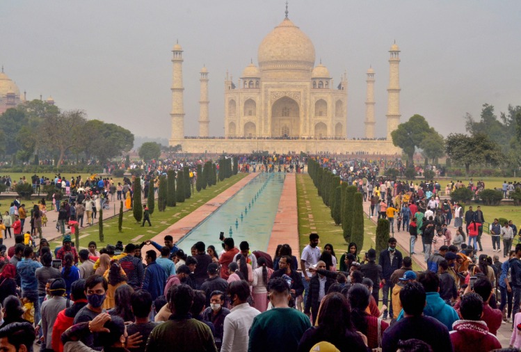 एबीएन सेंट्रल डेस्क। नया साल 2022 के पहले दिन ताजमहल पर रिकॉर्डतोड़ भीड़ उमड़ी। शनिवार को दिनभर में करीब 40 हजार पर्यटकों ने ताज का दीदार किया। सुबह से शाम तक स्मारक के दोनों प्रवेश द्वारों पर कतारें लगी रहीं। कई पर्यटक बिना मास्क के दिखे। आगरा किला समेत अन्य स्मारकों पर पर्यटकों की संख्या अन्य दिनों के मुकाबले ज्यादा रही। साल के पहले दिन सुबह से ही पर्यटकों की भीड़ ताज के दीदार के लिए पहुंचने लगी। सुबह नौ बजे से धूप निकल आने के बाद पर्यटकों की संख्या में और इजाफा हो गया। दोपहर दो बजे तक ताजमहल के पूर्वी और पश्चिमी दोनों गेटों पर पर्यटकों की लंबी लाइन लग गई। स्मारक में प्रवेश के लिए पर्यटकों को काफी इंतजार करना पड़ा। भारतीय पुरातत्व सर्वेक्षण (एएसआई) के अनुसार एक जनवरी 2022 को 37 हजार से ज्यादा टिकट बिके। भारतीय पुरातत्व सर्वेक्षण के पास, वीआईपी मेहमानों, ग्रुप के आने के कारण दिनभर में करीब 40 हज़ार पर्यटकों ने ताजमहल को निहारा इनमें विदेशी पर्यटकों की संख्या 250 के करीब रही। आगरा किला में साढ़े नौ हजार से ज्यादा पर्यटक पहुंचे। नए साल के पहले दिन फतेहपुर सीकरी स्मारक में भी पर्यटकों और जायरीनों का तांता लगा रहा। इसके चलते आगरा गेट और शाहकुली पर जाम की स्थिति बनी रही। सुबह से ही सैलानियों के पहुंचने का सिलसिला शुरू हो गया। शेख सलीम चिश्ती की दरगाह में भी दिनभर भीड़ रही। स्मारक में प्रवेश के लिए जोधाबाई और दीवाने आम की बुकिंग विंडो पर टिकट और प्रवेश के लिए लंबी कतारें लगी रहीं। कुछ पर्यटक प्रतिबंधित स्मारक अनूप तालाब में बैरिकंडिंग लांघकर प्रवेश कर गए। बाद में सुरक्षा गार्डों ने उन्हें बाहर निकाला। वाहनों की पार्किंग में भी सैलानियों को परेशानी हुई।