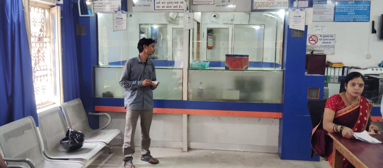 फोटो संकेत : लोहरदगा बैंक ऑफ़ इंडिया मुख्य शाखा में मंगलवार को दोपहर दो बजे तमाम कर्मचारियों के एक साथ लंच पर चले जाने के कारण जमा और निकासी काउंटर में प्रतीक्षा करता खाताधारी और अपनी समस्या को लेकर आई महिला इंतजार करतीं।