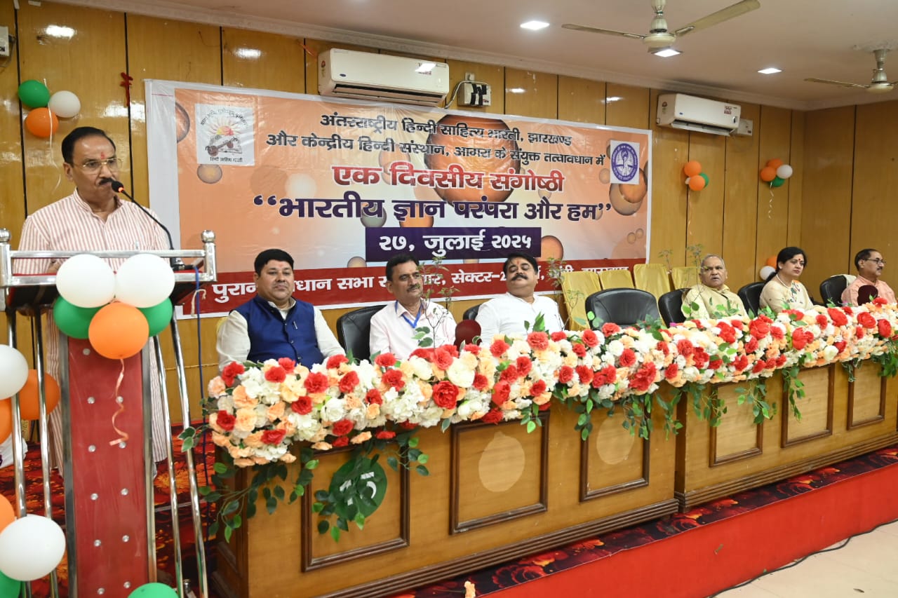 टीम एबीएन, रांची। आज दिनांक 27 जुलाई 2025 को रांची स्थित पुराना विधानसभा सभागार में केंद्रीय हिंदी संस्थान, आगरा और अंतरराष्ट्रीय हिंदी साहित्य भारती, झारखंड इकाई के संयुक्त तत्वावधान में भारतीय ज्ञान परंपरा और समकालीन समाज विषयक एक एक दिवसीय संगोष्ठी का भव्य आयोजन किया गया। कार्यक्रम में हिंदी साहित्य, भारतीय संस्कृति और शिक्षा से जुड़े अनेक विद्वानों, साहित्यकारों, शोधार्थियों और प्रबुद्धजनों ने भाग लिया।