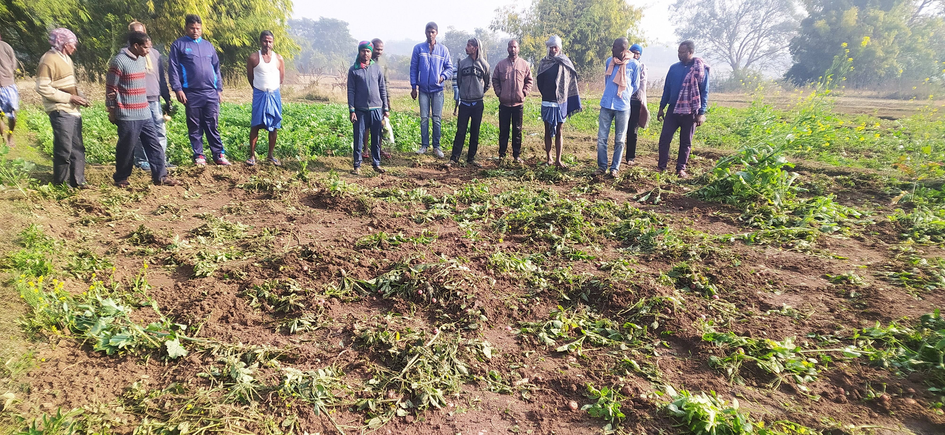 राहे, रांची। राहे प्रखंड के लोवाहातू पंचायत अंतर्गत कदमडीह, जायनासारना गांव में दर्जनों किसानों की 20 एकड़ जमीन में आलू, मटर और राहड़ को रौंद दिया है। कई किसानों के खलिहान में रखे धान भी खा गये और शेष को नष्ट कर दिया। गांव में नुकसान की जानकारी मिलने पर वन विभाग के कर्मचारी के साथ जिला परिषद सदस्य रजिया खातुन, मुखिया जगतपाल मुंडा, उप प्रमुख राजकिशोर मेहता, आजसू नेता रंगबहादुर महतो, अमजद अली, किरीटी महतो, क्षेत्रमोहन महतो, झामुमो नेता बादल महतो, राजू महतो, भाजपा नेता ज्योति कोईरी ने गांव जाकर नुकसान की जानकारी ली। इधर, हितजारा गांव में भी हाथियों ने काफी नुकसान पहुंचाया है। 40 हाथियों का झुंड बांस वन जंगल में जमा हुआ है। कदमडीह के कार्तिक महतो, दुर्योधन महतो, रथू महतो, अभिराम महतो, खेतू महतो, राजू महतो, ईश्वर महतो, कनक महतो, जितराय महतो, सावना महतो, द्रोण महतो, कर्ण महतो, राजू लोहरा जबकि हितजारा गांव के नवघन महतो, रोहिना लोहरा, हलधर योगेश्वर महतो, नरेंद्र महतो, आदि की फसल को हाथियों ने नष्ट कर दिया है।