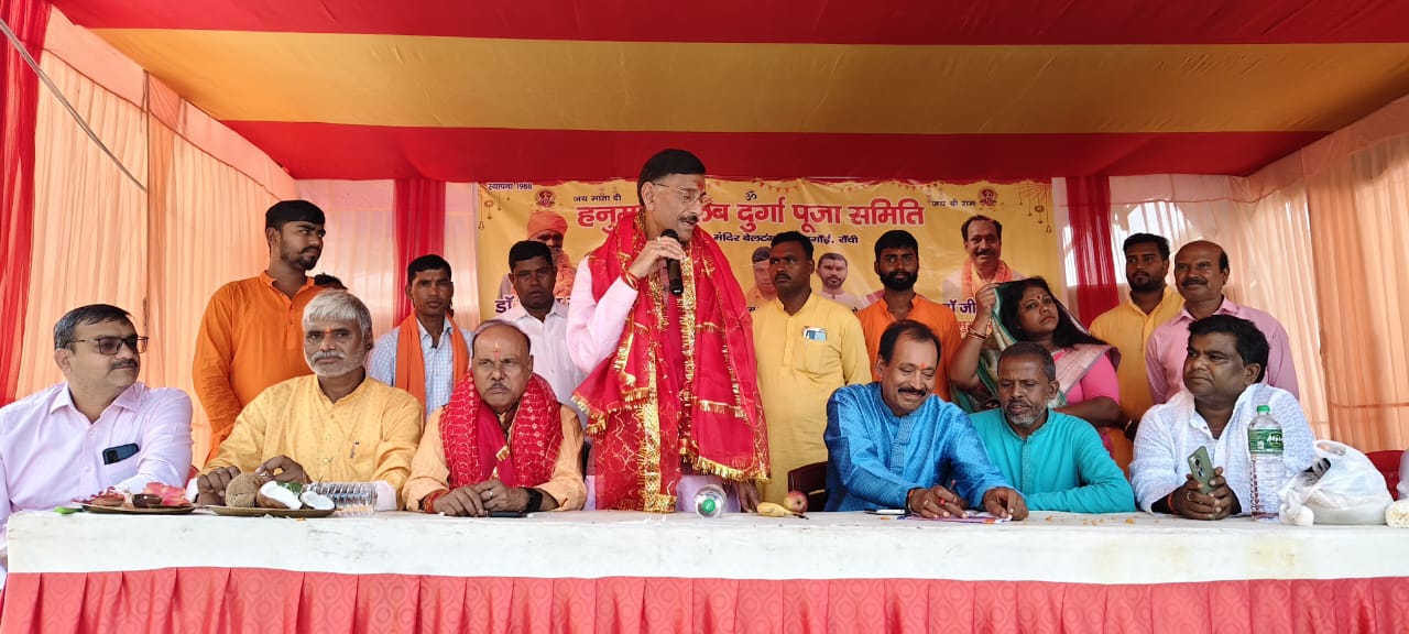 हनुमान क्लब, दुर्गा पूजा समिति, बड़ागांई, रांची। ========= प्रेस विज्ञप्ति ========= महाष्टमी के पावन बेला में केंद्रीय रक्षा राज्य मंत्री संजय सेठ, विश्व हिंदू परिषद के क्षेत्र मंत्री डॉ बिरेन्द्र साहु, पूर्व विधायक समरी लाल ने किया पूजा अर्चना। ============ प्रातः काल से संध्या तक गांव के समस्त माताएं-बहने पारंपरिक व भक्तिभाव से माता दुर्गा का किये पूजा अर्चना। ============= 30 सितंबर 2025, रांची : हनुमान क्लब, दुर्गा पूजा समिति के द्वारा श्री श्री पंचदेव मंदिर, बेल टंगरा बड़ागांई, रांची में हो रहे दुर्गा पूजन महोत्सव का महाष्टमी के पावन बेला में आज पूर्वाह्न 11:00 बजे केंद्रीय रक्षा राज्य मंत्री संजय सेठ, विश्व हिंदू परिषद के क्षेत्र मंत्री डॉ बिरेन्द्र साहु, पूर्व विधायक समरी लाल सहित सैकड़ो ग्रामीण महिला-पुरुषों ने अपनी पारंपरिक पूजा-अर्चना कर माता भगवती का आशीर्वाद लिए। इस अवसर पर केंद्रीय रक्षा राज्य मंत्री संजय सेठ ने श्रद्धालुओं को शुभ मंगलकामना देते हुए कहा माता दुर्गा शक्ति स्वरुपा है। माता जगत कल्याण के लिए असुरों का नाश कर धर्म की स्थापना की थी। उन्होंने कहा राष्ट्र को मजबूत करने के लिए स्वदेशी वस्तुओं को अपनायें। विश्व हिंदू परिषद के क्षेत्र मंत्री डॉ बिरेन्द्र साहु ने कहा शक्ति के पूजन हमें अधर्म को नाश करने एवं धर्म के विजय पताका लहराने की प्रेरणा देती है। उन्होंने कहा अधर्मी प्रवृत्तियों को नाश करने के लिए शास्त्र के साथ-साथ शस्त्र की भी आवश्यकता होती है, यह माता दुर्गा के स्तुति से हमें सीख मिलती है। इस अवसर पर समिति के संरक्षक डॉ जीवाधन प्रसाद, अध्यक्ष राजेश साहू, मंत्री बस कुमार साहू, कोषाध्यक्ष अजय महतो, श्री महावीर मंडल के कोषाध्यक्ष मनोज साहू प्रवक्ता शेखर साहू, बालशाय महतो, मनीष साहू, रणधीर सिंह, प्रेम कुमार, विकास कुमार, बबिता देवी,आनंद साहू, साहू सहित दर्जनों श्रद्धालुगण उपस्थित थे। उक्त जानकारी