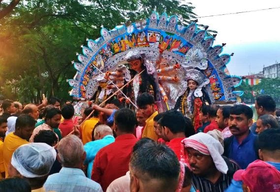 विजयादशमी के पावन अवसर पर गुरूवार को देवी मां की डोली उठाकर पारंपरिक ढाक और ढोल की थाप पर भक्तों ने माता रानी को नम आंखों से विदाई दी। भावुकता और उत्सव का यह संगम बारिश के बावजूद पूरे उत्साह और भक्ति भाव के साथ देखने को मिला।