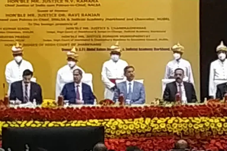 एबीएन सेंट्रल डेस्क। चीफ जस्टिस ऑफ इंडिया एन वी रमना एक दिवसीय दौरे पर रांची में हैं। धुर्वा स्थित ज्यूडिशियल एकेडमी में आयोजित कार्यक्रम में सीजेआई भाग ले रहे हैं। इस कार्यक्रम में झारखंड हाईकोर्ट के मुख्य न्यायाधीश डॉ रवि रंजन सहित कई जज, अधिवक्ता और नेशनल लॉ युनिवर्सिटी के स्टूडेंट्स मौजूद हैं। इस मौके पर चीफ जस्टिस ऑफ इंडिया का संबोधन भी होगा। आज रांची में आयोजित जस्टिस एसबी सिन्हा मेमोरियल लेक्चर में चीफ जस्टिस शामिल होंगे। रांची में आयोजित कार्यक्रम के दौरान मुख्य न्यायाधीश प्रमंडलीय न्यायालय चांडिल और नगर उंटारी का ऑनलाइन उदघाटन करेंगे। इसके बाद झालसा के प्रोजेक्ट शिशू के तहत कोरोना काल में अपने माता पिता को खोनेवाले बच्चों के बीच छात्रवृत्ति का भी वितरण करेंगे। इसके अलावा सीजेआई निराश्रितों की सुरक्षा और उनके अधिकारियों को संरक्षित करने में मध्यस्थता की भूमिका पर भी एक कार्यक्रम में हिस्सा लेंगे और उन्हें संबोधित करेंगे। इस कार्यक्रम में सीजेआई निराश्रितों को उनके अधिकार से अवगत कराएंगे। जानकारी के मुताबिक चीफ जस्टिस ऑफ इंडिया कार्यक्रम समापन के बाद दिन के 3.30 बजे वापस दिल्ली रवाना होंगे।