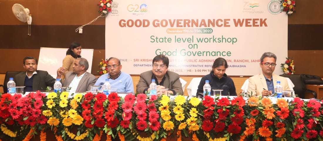 टीम एबीएन, रांची। राज्य के मुख्य सचिव रहे और अब झारखण्ड कर्मचारी चयन आयोग के अध्यक्ष श्री सुधीर त्रिपाठी ने कहा कि गुड गवर्नेंस एक सतत् प्रक्रिया है, इसमें ठहराव नहीं है। गुड गवर्नेंस का उद्देश्य कमजोर वर्ग के लोगों पर फोकस होना चाहिए। उन्होंने कहा कि प्रशासनिक अधिकारियों का लोक हित की योजनाओं को अंतिम कतार में खड़े व्यक्ति तक पहुंचना लक्ष्य होना चाहिए। वे आज श्री कृष्ण लोक सेवा संस्थान में आयोजित गुड गवर्नेंस सप्ताह पर आयोजित राज्यस्तरीय कार्यशाला को संबोधित कर रहे थे।