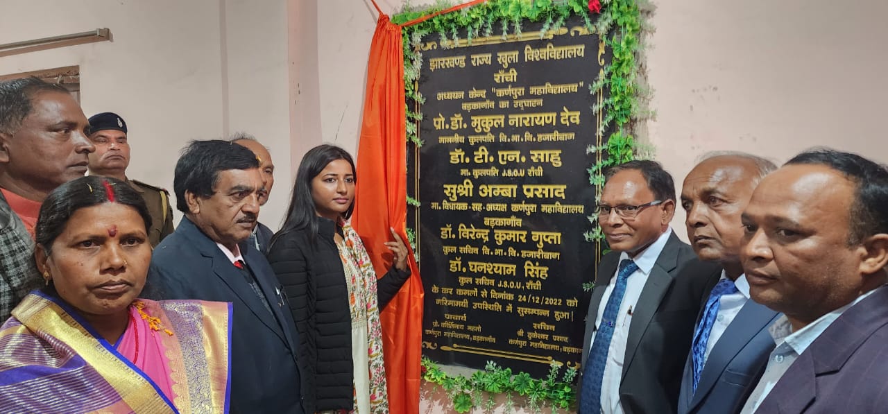टीम एबीएन, बड़कागांव। कर्णपुरा महाविद्यालय बड़कागांव में झारखंड राज्य खुला विश्वविद्यालय अध्ययन केंद्र का उद्घाटन दिन शनिवार को हुआ। स्थानीय विधायक अंबा प्रसाद, विनोबा भावे विश्वविद्यालय के कुलपति डॉ मुकुल नारायण देव, खुला विश्वविद्यालय के कुलपति डॉ टीएन साहू, कुलसचिव डॉ वीरेंद्र कुमार गुप्ता, डॉ घनश्याम सिंह ने संयुक्त रुप से पूजा पाठ कर व शिलापट्ट अनावरण कर किया।
