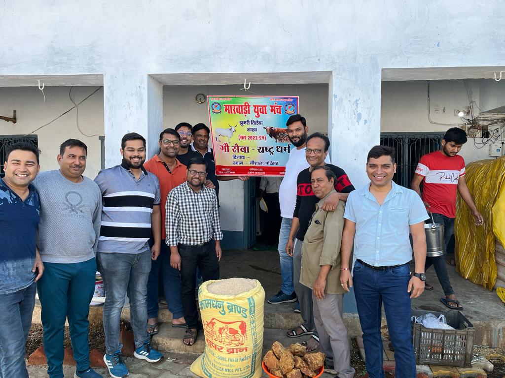 टीम एबीएन, कोडरमा। मारवाड़ी युवा मंच की झुमरी तिलैया इकाई के नये सत्र 2023-24 की नई कमेटी ने गौशाला में गौ आहार कार्यक्रम के साथ प्रोजेटक्ट की शुरुआत की। मौके पर नव निर्वाचित अध्यक्ष राज पचिसिया, सचिव आशीष जोशी, कोषाध्यक्ष चिंटू अग्रवाल, कार्यक्रम के प्रोजेटक्ट डायरेक्टर शुभम चौधरी ने कहा कि मारवाड़ी युवा मंच समाज सेवा के क्षेत्र में कार्य करती है। इसी उद्देश्य को लेकर सत्र की शुरूआत गौ आहार खिलाकर किया।
