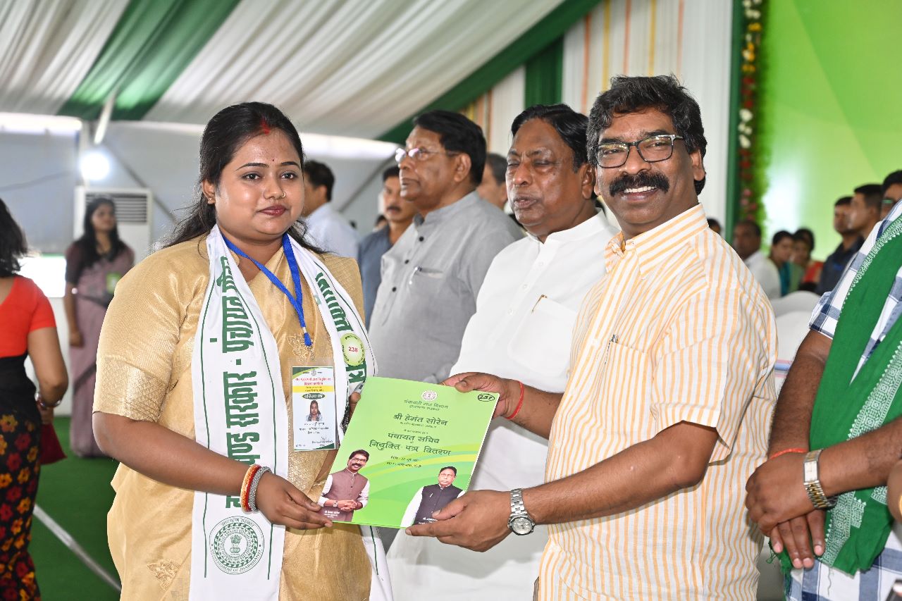 सीएम श्री सोरेन ने गुरुवार को मोरहाबादी मैदान में आयोजित नियुक्ति वितरण समारोह में बोल रहे थे। इस मौके पर उन्होंने 2550 पंचायत सचिवों को मिला नियुक्ति पत्र सौंपा। नियक्ति पत्र पा कर अभ्यर्थियों के चेहरे खिल उठे। समारोह में श्री सोरेन ने घोषणा की कि राज्य के ग्रामीण क्षेत्रों को सशक्त करने के लिए हर साल मॉडल पंचायत बनाने वाले 5 पंचायत सचिवों को परिवार के साथ विदेश भ्रमण सरकार अपने खर्च पर करायेगी।