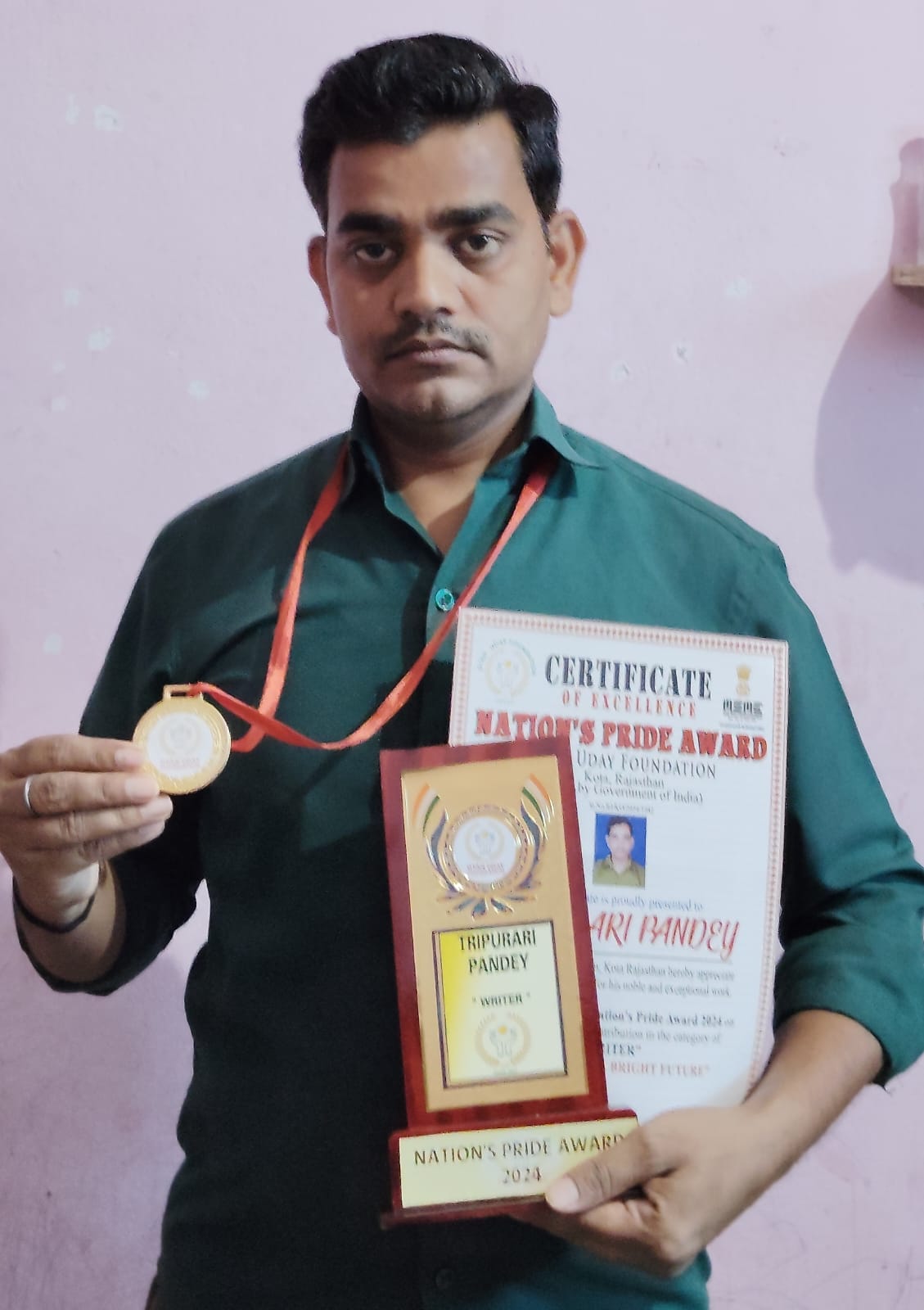 टीम एबीएन, कोडरमा। मलयपुर निवासी अनीता देवी के छोटे पुत्र त्रिपुरारी पांडेय को उनकी साहित्यिक उपलब्धि व हिंदी साहित्य में उनकी बढ़ती प्रभावशीलता के आधार पर ज्ञान उदय फाउंडेशन राजस्थान ने अपने प्रतिष्ठित सम्मान प्राइड नेशन अवार्ड से इन्हें नवाजा है।