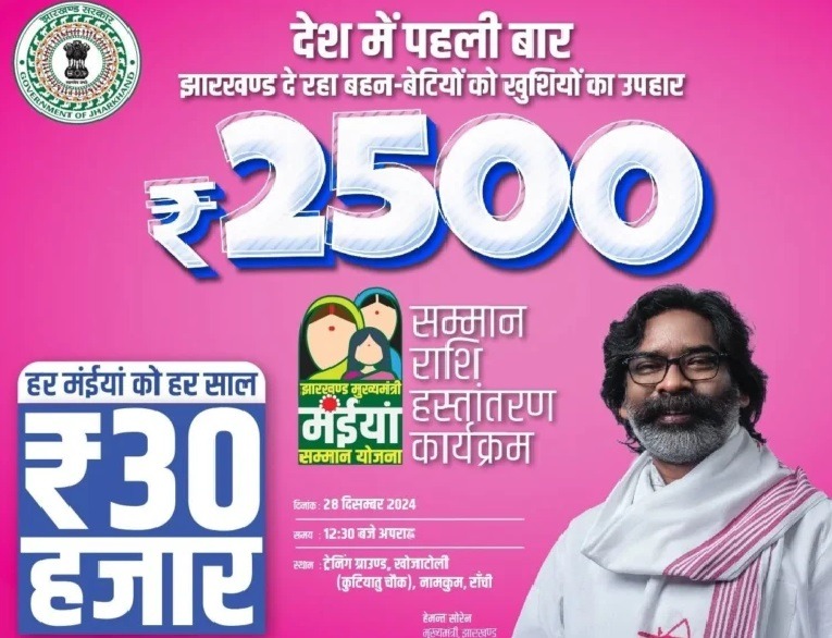 हालांकि मुख्यमंत्री हेमंत सोरेन ने विधानसभा चुनाव के दौरान दिसंबर से महिलाओं को यह सम्मान राशि एक हजार से बढ़ाकर 2,500 रुपये करने का वादा किया था। विधानसभा चुनाव की घोषणा से एक दिन पहले सोरेन कैबिनेट ने दिसंबर से 1,000 की जगह 2,500 रुपये बढ़ाने का ऐलान किया था।