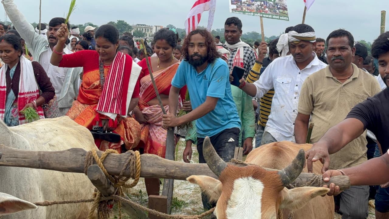 नगड़ी जमीन बचाओ संघर्ष समिति के आह्वान पर ग्रामीणों के समर्थन में JLKM केंद्रीय वरीय उपाध्यक्ष देवेंद्रनाथ महतो पहुंचे। हल बैल चला कर जमीन बचाव में आंदोलनरत हैं।