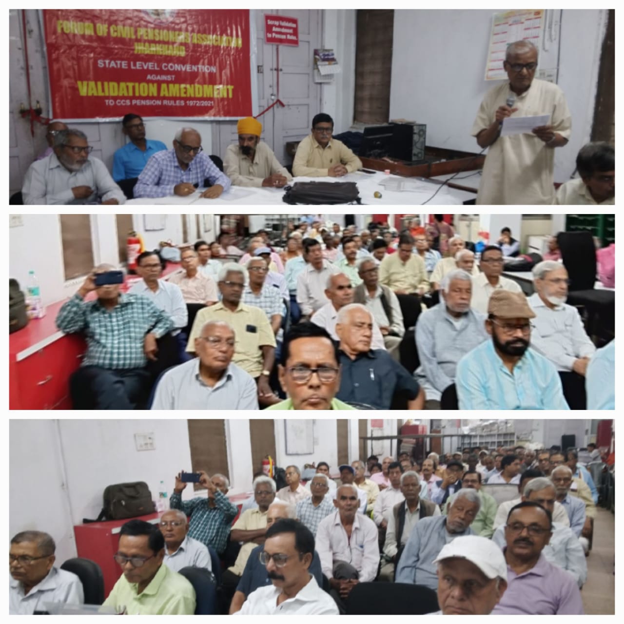आज दिनांक 24 अगस्त को शहीद चौक पर ऑल इंडिया फोरम ऑफ सिविल पेंशनर्स एसोसिएशन के राष्ट्रीय आह्वान पर पेंशन अधिनियम में ड्राकोनियन संशोधन एवं 8वें केंद्रीय वेतन आयोग के गठन में अप्रत्याशित विलंब को लेकर राज्य स्तरीय कन्वेंशन का आयोजन किया गया संयुक्त रूप से जिसकी अध्यक्षता पोस्टल पेंशनर्स एसोसिएशन झारखंड के साधन कुमार सिंहा,रेलवे के जी एस बहल, बी एस एन एल पेंशनर्स वेलफेयर एसोसिएशन के नरेश लाल और ऑल इंडिया बी एस एन एल डिपार्टमेंट के विनोद कुमार ने किया.