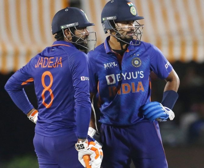 एबीएन स्पोर्ट्स डेस्क। भारत ने श्रीलंका को दूसरे टी-20 मैच में सात विकेट से हरा दिया है। इसी के साथ टीम इंडिया ने तीन टी-20 मैचों की सीरीज में 2-0 की अजेय बढ़त भी बना ली है। हिमाचल प्रदेश के धर्मशाला में खेले गए मुकाबले में भारत ने श्रीलंका के 184 रन के लक्ष्य को तीन विकेट खोकर और 17 गेंदें शेष रहते हासिल कर लिया। भारत की तरफ से श्रेयस अय्यर (74*) ने सबसे अधिक रन बनाए। बता दें कि सीरीज का तीसरा और अंतिम टी-20 मैच रविवार को इसी मैदान पर खेला जाएगा। भारत की यह लगातार 11वीं टी-20 इंटरनेशनल जीत रही। भारत की घर में यह लगातार सातवीं टी-20 सीरीज जीत रही। 184 रन के लक्ष्य का पीछा करने उतरी भारत की शुरुआत खराब रही। रोहित शर्मा (1) को पहले ही ओवर में दुष्मंथ चमीरा ने क्लीन बोल्ड कर दिया। ईशान किशन (16) का बल्ला भी खामोश रहा और कुमार की गेंद पर वह शनाका को आसान कैच थमाकर डगआउट लौट गए। 44 रन पर दो विकेट गंवाने के बाद भारत को श्रेयस अय्यर (74*) और संजू सैमसन (39) ने संभाला। दोनों ने तीसरे विकेट के लिए 84 रन की साझेदारी की।