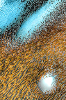 एबीएन डेस्क। निया भर के वैज्ञानिकों में मंगल ग्रह को लेकर काफी उत्सुकता है। इसी के चलते दुनिया का हर देश जल्द से मंगल यानी लाल ग्रह पर पहुंचना चाहता है। इस बीच अमेरिकी अंतरिक्ष एजेंसी नासा ने मंगल ग्रह की एक ऐसी तस्वीरे जारी की है, जिसे देखकर लोगों की हैरानी बढ़ गई है। दरअसल इस तस्वीर में लाल ग्रह के ब्लू डूम्स यानी नीले रंग के बर्फीले टीले नजर आ रहे हैं। लाल ग्रह पर नीले टीले : नासा ने इस तस्वीर को शेयर करते हुए इसके कैप्शन में लिखा, ब्लू डूनस ऑन द रेड प्लेनेट यानी लाल ग्रह पर नीले टीले। मंगल ग्रह की इस तस्वीर को सोशल मीडिया पर खासा पसंद किया जा रहा है। नासा ने बताया कि इस तस्वीर को मंगल के उत्तरी ध्रुव से लिया गया है, जिसे इस लाल ग्रह पर चलने वाली तेज हवाओं ने बनाया है। मंगल ग्रह पर यह इलाका करीब 30 किलोमीटर में फैला है। तस्वीर में नीले रंग की टीलों का रहस्य :इस विशेष तस्वीर को नासा के मार्स ओडिसी ऑर्बिटर के इंफ्रारेड कैमरे से खींचा गया है। ऑर्बिटर में तैनात इस कैमरे को थर्मल एमिशन इमेजिंग सिस्टम कहा जाता है। नासा के मुताबिक इस तस्वीर में दिख रहे अलग-अलग रंग दरअसल लाल ग्रह के सतह पर अलग-अलग तापमान को प्रदर्शित कर रहे हैं। इस तस्वीर में दिख रहा पीला या नारंगी रंग ज्यादा तापमान को दर्शा रहा है, जबकि नीला रंग ठंडे तापमान को बताता है। दिन और रात का तापमान माप रहा ओडिसी : नासा के बयान के मुताबिक, मार्स ओडिसी ऑर्बिटर का थर्मल एमिशन इमेजिंग सिस्टम दिन और रात दोनों समय मंगल के तापमान को मापता रहता है। इससे वैज्ञानिकों को यह निर्धारित करने में मदद मिलती है कि इस ग्रह पर चट्टान, रेत या धूल जैसी भौतिक सामग्री मौजूद हैं कि नहीं। इसका डेटा इन सामग्रियों के गर्म होने और उनके ठंडे होने के तरीकों का भी पता लगाता है। मंगल ग्रह पर ओडिसी के 20 साल : ओडिसी को 7 अप्रैल, 2001 को फ्लोरिडा के केप कैनावेरल एयर फोर्स स्टेशन से लांच किया गया था। अंतरिक्ष के इतिहास में यह सबसे लंबे समय तक मंगल पर काम करने वाला अंतरिक्ष यान बनने का गौरव प्राप्त कर चुका है। नासा के वैज्ञानिकों की यह एक बड़ी उपल्बिध थी। इन तस्वीरों को मार्स ओडिसी ने नवंबर, 2002 और नवंबर, 2004 के दौरान ली थी। इसे नासा ने ओडिसी के 20 साल पूरे होने के उपलक्ष्य में जारी किया है।