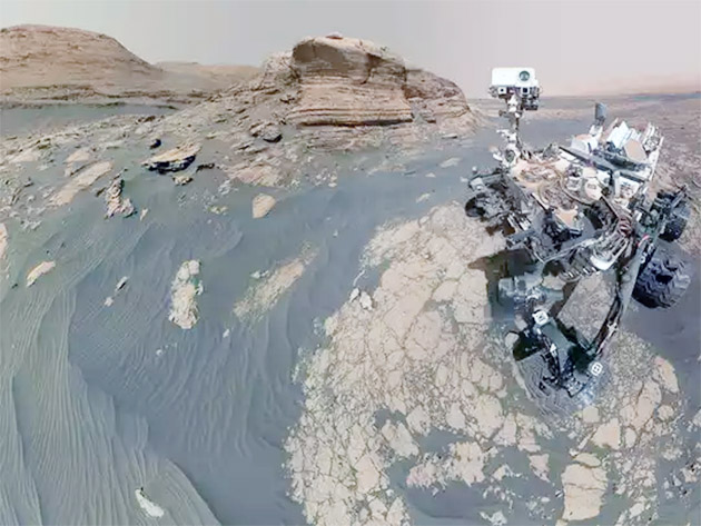 NASA के Curiosity रोवर ने मार्च की शुरुआत से मंगल ग्रह पर एक चट्टान पर काम करना शुरू कर दिया है। इसे Mont Mercou नाम दिया गया है। 6 मीटर ऊंची चट्टान की तस्वीर रोवर ने एक सेल्फी में ली है। सेल्फी में रोवर चट्टान के सामने दिख रहा है और एक सैंपल चट्टान Nontron पर नया ड्रिल का छेद भी दिख रहा है। यह रोवर का 30वां सैंपल है। यह सेल्फी 60 तस्वीरों से बनी है जिन्हें मार्स हैंड लेंस इमेजर (MAHLI) ने लिया है। यह रोवर के रोबॉटिक आर्म पर लगा है। इन तस्वीरों को मास्टकैम से ली गईं 11 तस्वीरों के साथ मिलाया गया। इससे पहले रोवर के मास्टकैम ने कुछ पैनोरमा तस्वीरें भी ली थीं। Curiosity ने सैंपल को लेने के बाद पाउडर में तब्दील किया और सुरक्षित रख लिया। कुछ दिन पहले Curiosity ने मंगल के बादलों का वीडियो भेजा था। ये नजारे उसके ऊपर लगे कैमरों में कैद हुए थे। आठ नई तस्वीरों में नैविगेशन कैमरे की नजर से पांच मिनट के नजारे देखे गए। ये धरती के बादलों की तरह ही चलते हुए दिखे। इन्हें उत्तर कैरोलीना स्टेट यूनिवर्सिटी के साइंटिस्ट पॉल ब्राइर्न ने शेयर किया था।