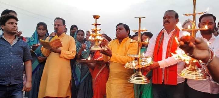 बेरमो /करगली। नगर परिषद फुसरो क्षेत्र अंतर्गत नमामि गंगे योजना के तहत गंगा स्वच्छता पखवाड़ा 2021 कार्यक्रम के तहत दामोदर हिन्दुस्तान पुल के निकट भव्य गंगा आरती का आयोजन किया गया।जिसमें पंडित बरमदेव पांडेय ने विधिवध पूजा कर कार्यक्रम की शुभारंभ किया।मुख्य यजमान नप कार्यपालक पदाधिकारी अरुण कुमार भारती सह धर्मपत्नी रही। कार्यक्रम में मुख्य रुप से नप अध्यक्ष राकेश कुमार सिंह, उपाध्यक्ष छेदी नोनिया, गिरिजा शंकर पाण्डेय, आर उनेश शामिल रहे। नप अध्यक्ष राकेश कुमार सिंह ने कहा कि नमामि गंगे योजना के तहत सभी नगरवासियों को बढ़-चढ़ कर हिस्सा लेना चाहिए। इस योजना को सफल बनाकर ही दामोदर नदी को स्वच्छ रखा जा सकता है। नदियों को प्रदूषित होने से बचायें। वहीं इससे पूर्व आरडीपीएस की छात्र-छात्राओं ने कार्यक्रम को सफल व दामोदर नदी को स्वच्छ रखने के लिए नप कार्यालय से प्रभातफेरी निकल कर लोगों को जागरूक किया गया। महेंद्र चौधरी, नीरज पाठक, नीतू सिंह, सुनीता सिंह, मुन्ना सिंह, कुमुद नोनिया, कैलाश ठाकुर, नीरज पाठक, दिनेश सिंह, परवेज अख्तर, शिवनंदन चौहान, उत्तम सिंह, कृष्ण चांडक, अरविंद वर्मा, रेहाना खातून, जितेंद्र सिंह, राकेश मालाकार, सुरेश बंसल, सुशांत राईका, पम्मी सिंह, सिकंदर ठाकुर, रमेश स्वर्णकार, भोला दिगार आदि मौजूद थे।