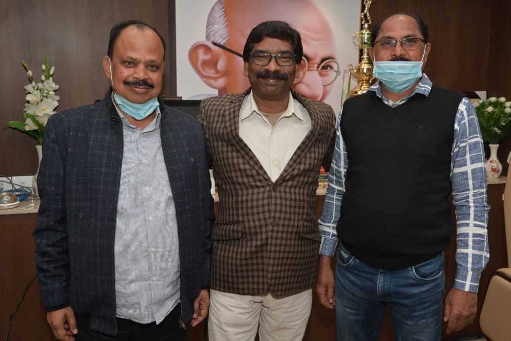 पाकुड़। झामुमो के केंद्रीय कार्यकारी अध्यक्ष मनोनीत किए जाने पर पाकुड़ झामुमो जिला उपाध्यक्ष समद अली एवं जिला उपाध्यक्ष अजीजुल इस्लाम ने मुख्यमंत्री कक्ष में मुख्यमंत्री से मुलाकात कर उन्हें हार्दिक बधाई व शुभकामनाएं दीं है। मुख्यमंत्री श्री सोरेन जी से पाकुड़ के लिए कई मुद्दों पर बात चीत हुई। झामुमो संगठन पर भी मुख्यमंत्री से विस्तार पूर्वक चर्चा की गयी। पाकुड़ जिले में स्वास्थ्य विभाग में डॉक्टर की कमी डॉक्टर भेजने का प्रस्ताव रखा गया। मुख्यमंत्री ने समस्या को सुनकर जल्द ही कार्रवाई करने का आश्वासन दी। जिला उपाध्यक्ष समद अली एवं जिला उपाध्यक्ष अजीजुल इस्लाम ने कहा कि झारखंड के युवा मुख्यमंत्री हेमंत सोरेन के नेतृत्व में विकास का रफ्तार में झारखंड अव्वल रहा। कोरोना काल में हेमंत सोरेन जो कर दिखया अन्य राज्यों को सोचना पड़ेगा।