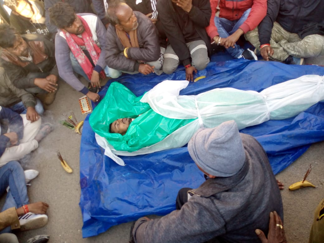 गुमला। शहर के शांति नगर निवासी रायजीत साहू के 22 वर्षीय पुत्र सत्यम साहु की ईटकी के समीप शनिवार की रात हुए सड़क दुर्घटना में मौत हो गई। जिसके विरोध में शव के साथ सुडी समाज के लोगों व परिजनों ने गुमला के टावर चौक में शाम करीब 4 बजे सड़क जाम कर दिया। मिली जानकारी के अनुसार सत्यम साहू अपने चार पहिया वाहन से रांची से गुमला आ रहा था। इसी दौरान किसी वाहन से धक्का उसके वाहन को लगा। जिसे वह गंभीर रूप से घायल हो गई और बाद में उसकी मौत हो गई। इधर, घटना को लेकर परिजनों ने उपायुक्त के नाम एक ज्ञापन सौंपा है। जिसमें कहा गया है कि सत्यम साहू की हत्या कर ईटकी के पास फेंका गया और घटना को दुर्घटना साबित करने के लिए सत्यम के वाहन को क्षतिग्रस्त कर दिया गया है। ईटकी थाना में घटना को लेकर प्राथमिकी दर्ज कराने गये। जिसमें घटना को अंजाम देने वाले का नाम भी लिखा हुआ था लेकिन ईटकी थाना में जबरन नाबालिग को डरा धमका कर केश दर्ज किया गया है। परिजनों ने आरोप लगाया है कि घटना कराने में उत्पाद विभाग में सब इंस्पेक्टर के पद पर कार्यरत सोनू साहु का हाथ है। परिजनों ने कहा कि सोनू साहू बार-बार सत्यम साहू को रंगदारी के पैसे को लेकर प्रताड़ित कर रहा था और रंगदारी नहीं देने पर यह धमकी दिया गया था कि सत्यम तुम जिंदा रहोगे या मैं। वहीं मृतक की मां का कहना है कि उत्पाद दारोगा ने उसके घर पर छापामारी की थी। जिसमें दारोगा ने कहा था कि दारू बेचती हो पूरे परिवार को बर्बाद कर देंगे और मेरे पति व बेटे को भी पूरी तरह बर्बाद करने की धमकी देकर गया था। इधर, परिजनों ने घटना को लेकर हत्या की प्राथमिकी दर्ज कर सोनू साहू को अविलंब गिरफ्तार करने ताकि कांड का अनुसंधान प्रभावित न हो, घटना की उच्चस्तरीय जांच और प्रशासनिक अधिकारी की संलिप्ता पाये जाने पर विधि सम्मत कार्रवाई करने, मृतक के परिवार को पचास लाख रूपया मुआवजा व सरकारी नौकरी देने, मृतक के पिता को झूठे केस में जेल भेजने की भी जांच कर पिता को जांच कर छोड़ने, सरकारी नौकरी में रहकर घटना को अंजाम देने व सोनू साहु के सहयोगियों पर भी कार्रवाई की मांग की है। सुडी समाज ने की घटना की निष्पक्ष जांच की मांग : सुडी समाज के लोगों ने कहा कि घटना हादसा नहीं एक हत्या है। जिस स्थान पर दुर्घटना हुई है। उसे देखने से ऐसा प्रतीत होता है कि यह हादसा नहीं एक साजिश है और जान बूझकर घटना को अंजाम दिया गया है। सुड़ी समाज के लोगों ने पुलिस अधीक्षक के नाम एक ज्ञापन बनाया है। जिसमें दुर्घटना की निष्पक्ष जांच की मांग की है।