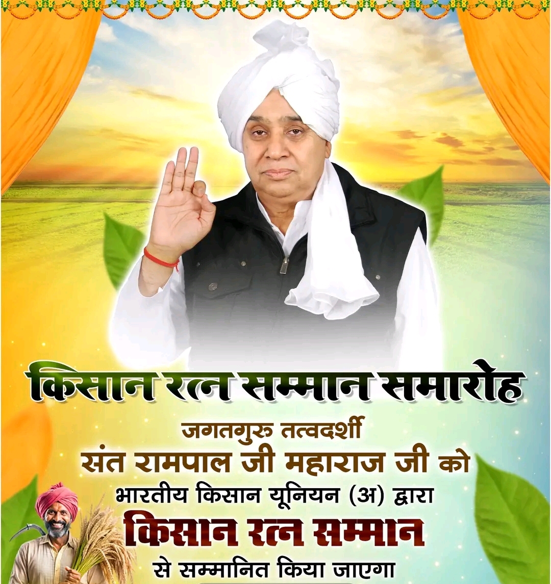 एबीएन सेंट्रल डेस्क (हरियाणा)। हिसार जिले का ऐतिहासिक गांव ढाया आगामी 21 दिसंबर 2025, रविवार को एक अभूतपूर्व सम्मान समारोह का गवाह बनने जा रहा है। भारतीय किसान यूनियन (अंबावता) ने भारी आपदा के समय किसानों और मजदूरों के लिए संकटमोचक बने संत रामपाल जी महाराज को प्रतिष्ठित किसान रत्न उपाधि से सम्मानित करने का विधिवत निर्णय लिया है।