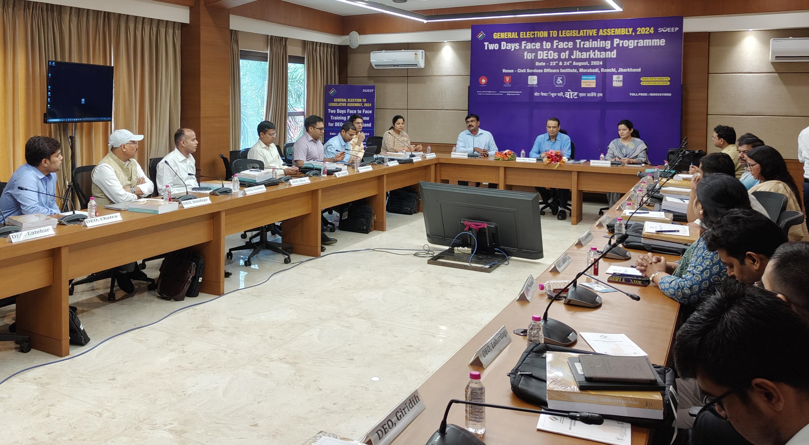 टीम एबीएन, रांची। मुख्य निर्वाचन पदाधिकारी कार्यालय के तत्वावधान में पूर्व निर्धारित कार्यक्रम के तहत आगामी विधानसभा चुनाव 2024 के निमित्त सभी जिला निर्वाचन पदाधिकारियों का मोहराबादी स्थित सिविल सेवा अधिकारी संस्थान में दो दिवसीय प्रशिक्षण कार्यक्रम शुक्रवार को शुरू हुआ। इस प्रशिक्षण कार्यक्रम हेतु भारत निर्वाचन आयोग की ओर से प्रशिक्षक (रिसोर्स पर्सन) के रूप में नामित पश्चिम बंगाल के मुख्य निर्वाचन पदाधिकारी आरिज आफताब भी पहुंचे हुए थे।