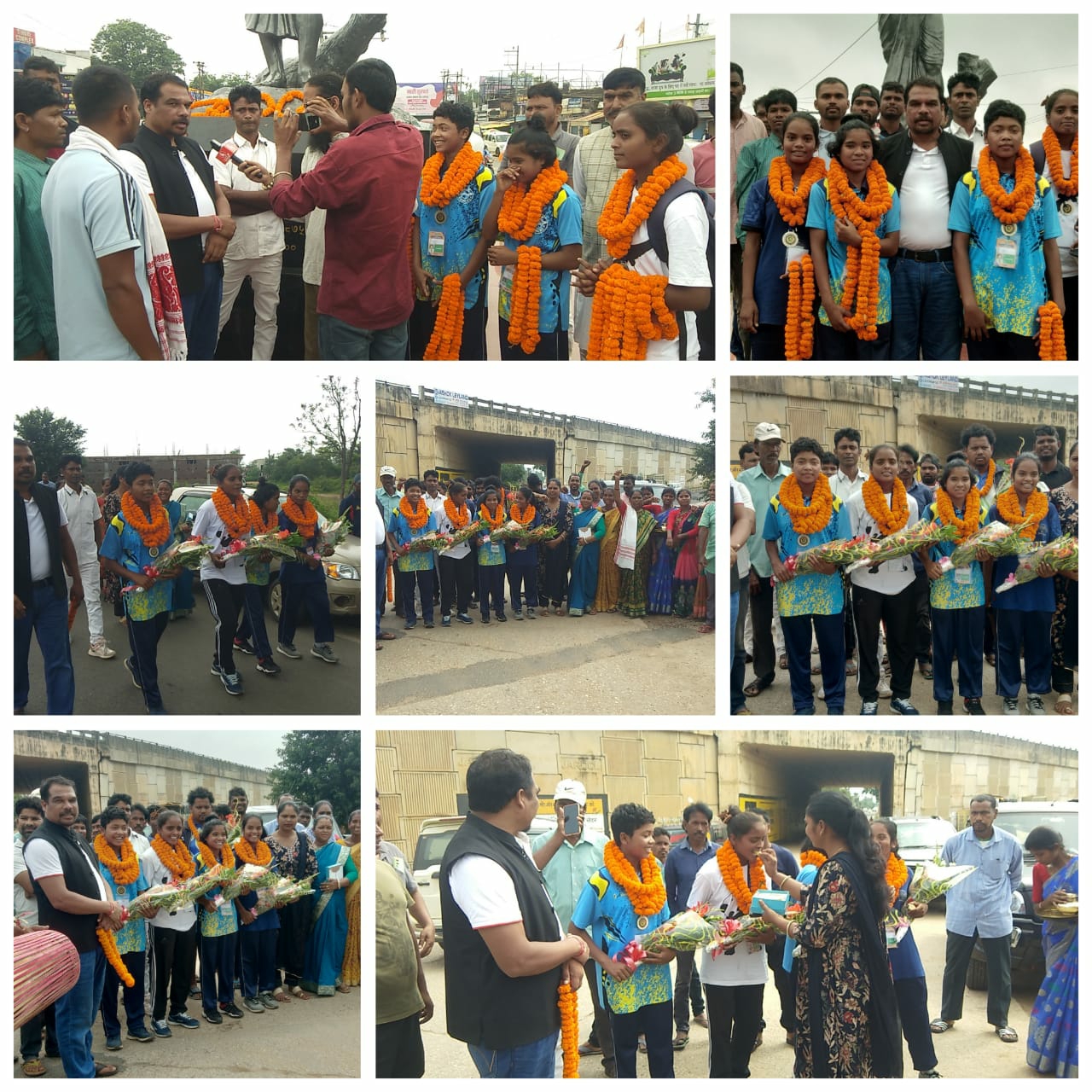 इसके बाद सम्मानित कार्यक्रम में स्थानीय जनप्तिनिधि सह मुखिया-श्रीमति रेणु बाला मिंज ने बताया कि सभी खिलाडियों कों हटिया रेलवे स्टेशन से स्वागत करते हुए धरती आबा भगवान बिरसा चौक में भगवान बिरसा मुंडा की प्रतिमा में माल्यार्पण करते हुए सभी खिलाड़ियों को पुष्प का मिला फहनाकर व फुलों का बुके प्रदान कर सम्मानित किये गये। गांव में उनके परिवार तथा ग्रामीणों के द्वारा बड़ी उत्साह के साथ पारम्परिक ढोल नगाड़ों से इनका स्वगत किया गया इससे सभी खिलाडियों का मनोबल और भी ज्यादा बढ गया और सभी खिलाडियों ने एक स्वर में कहा कि अगर हमें दुबारा मौका मिला तो टीम को निश्चित ही विजेता ट्राफी दिलाने का प्रयास करेंगे।