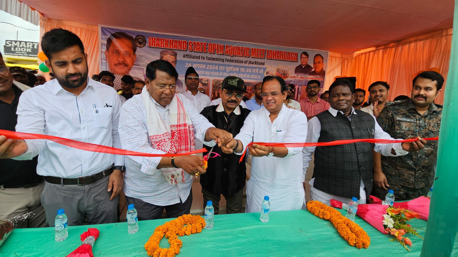कार्यक्रम में राज्य के ग्रामीण विकास और पंचायती राज्य मंत्री, वित्त मंत्री सह संसदीय कार्य मंत्री डॉ रामेश्वर उरांव, मनिका के विधायक रामचंद्र सिंह, पूर्व सांसद धीरज प्रसाद साहू, लोहरदगा के जिला परिषद अध्यक्ष रीना कुमारी, पुलिस कप्तान हारिस बिन जमां, प्रभारी उपायुक्त सह- डीडीसी दिलीप प्रताप सिंह शेखावत, सिविल एसडीओ अमित कुमार,नगर परिषद प्रशासक मुक्ति कीड़ो, विजय कुमार ,बड़ी संख्या में गण्यमन नागरिक, स्विमिंग एसोसिएशन लोहरदगा के सचिव दीपक मुखर्जी वीके बालान्जिनप्पा,अधिकारी और प्रायोजक एफडी इंटरप्राइजेज के निर्देशक हाजी जब्बार उर्फ जबरुल अंसारी संदीप मिश्रा सेमत शहर के प्रबुद्ध नागरिक और 10000 से अधिक दर्शन तालाब के चारों ओर मौजूद थे।