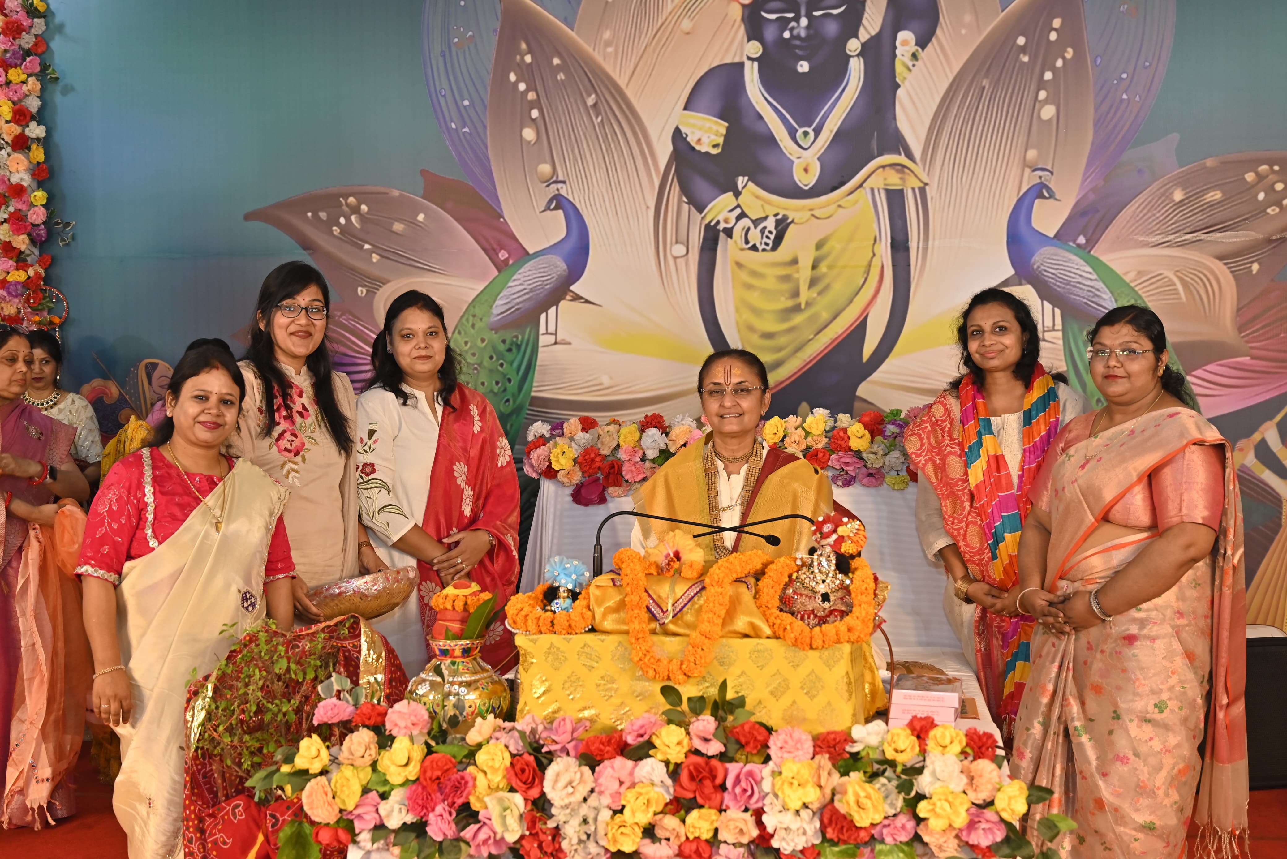 आज भी जिस प्रकार से यमुना मैया वृंदावन में सभी को दर्शन दे रही है लोग किस प्रकार से उसका आनंद प्राप्त कर रहे हैं यह प्रेम और भक्ति नहीं तो क्या है। प्रेम की असली परिभाषा ही गोपियां है जब उद्धव गोपियों को समझने जाते हैं तो गोपियों का प्रेम भाव देखकर उनकी कृष्ण के प्रति प्रेम में भक्ति को सुनकर वह समझ गए कि उनका ज्ञान इस प्रेम के आगे शून्य है। गुरु मां ने बताया कि जब हम किसी से प्रेम करें तो हमें ज्ञान नहीं लगना चाहिए। आज परिवार में जो लोग एक नहीं हो रहे हैं ।जो आपसी गृह क्लेश चल रहे हैं ।उनका एक ही कारण है वह प्रेम भूल जाते हैं और ज्ञान का ज्यादा उपयोग कर लेते हैं। और यही हमें एक दूसरे से अलग करता है। कथा के अंत में किस प्रकार से कन्हैया जी ने रुक्मणी जी का हरण किया और उनसे विवाह किया कथा के माध्यम से गुरु मां ने बताया । इस मनोहर झांकी के दर्शन करके सभी भक्त मंत्र मुक्त हो गए । सभी ने आनंद के साथ कृष्ण रुक्मणी की वरमाला करवाई ।मंगल गीत गाए और आपस में सभी ने नृत्य के साथ एक दूसरे को बधाइयां दी। कथा में मुख्य रूप से नीरा बथवाल, रूपा अग्रवाल ,गीता डालमिया, अनसूया नेवटिया, अलका सरावगी, मधु सर्राफ, उर्मिला पाड़िया, रीना सुरेखा, प्रीती पोद्दार ,बीना मोदी, बीना बूबना, प्रीती बंका, ,प्रीती अग्रवाल, शोभा हेतमसरिया , संगीता गोयल,ममता बूबना, ललिता नारसरिया सीमा पोद्दार सरिता अग्रवाल, सीमा टॉटीया रीता केडिया, मंजू गाड़ोदिया, मंजू केडिया,बबीता नारसरिया,जया बिजावत, सुनीता मेवाड़ा, सुनीता सरावगी, करुणा अग्रवाल, मीरा टिंबरेवाल, शोभा जाजू, रेखा अग्रवाल, अनू पोद्दार, सुनैना लॉयलका, कलावती अग्रवाल सीमा अग्रवाल, विद्या अग्रवाल, रेनू छापड़िया,कमला विजयवर्गीय, साक्षी अग्रवाल, पुष्पा खेतान, पदमा बंका, कुसुम मोर, नैना मोर आदि बहने उपस्थित थी। उक्त जानकारी मीडिया प्रभारी