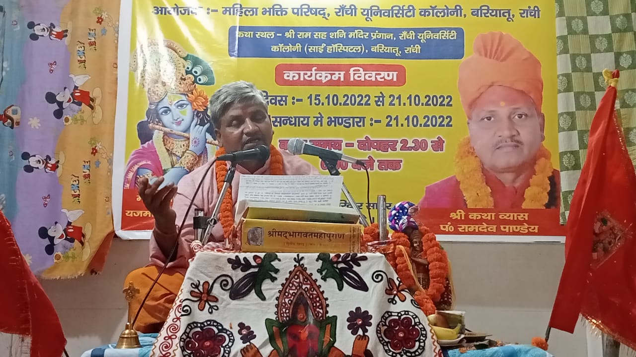 टीम एबीएन, रांची। दुनिया का सुखांत प्रेम कथा शिव सती की है। इसमें पार्वती के रूप में पुन: शिव शक्ति मिलन के रूप में है। शिव की बात भले सती नहीं मानती है, पर सती इसलिए पिता दक्ष के यज्ञ में जलती है कि वह शिव का सामूहिक अपमान नहीं सहन कर सकती है। यह दाम्पत्य की गरिमा है। इसके बाद भी सती शिव चरण का ध्यान कर जन्म जन्म शिवपद अनुरागी की अनुमति लेकर पार्वती के रूप में जन्म लिया है। सती का प्राणांत के बाद शिव सती के राख को पूरे शरीर में लगाकर भष्मीभूत हो गये और श्मशान के राख को सती का राख समझकर लगाने लगे। हर श्मशान के लाश के मुंड को सती का माथा समझकर पहनने लगे, तो कपालमाली कहलाये। यही है स्नेह, प्रेम। इसके बाद सती ही पार्वती के रूप मे जन्म ली। पार्वती ने कहा- वरहु शंभु न तो रहहीं कुमारी... और शिव और पार्वती का विवाह हुआ। यह है दाम्पत्य और भारतीय दाम्पत्य का उदाहरण। उक्त बातें पंडित रामदेव पाण्डेय ने भागवत कथा के चौथे दिन महिला भक्ति परिषद् रांची युनिवर्सिटी बरियातू में कही। बताते चलें कि कल कृष्ण जन्म की कथा होगी। कथा के आरंभ में विपिन सिंह ने आचार्य को शॉल ओढ़ाकर सम्मानित किया। इसे सफल बनाने में जगदीश पांडेय, मुन्ना पाण्डेय, गायत्री मिश्रा का योगदान सराहनीय रहा।