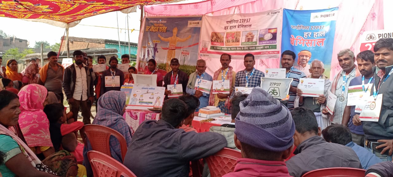 टीम एबीएन, केरेडारी (हजारीबाग)। केरेडारी प्रखंड के अंतर्गत पंचायत गरीकला में कोरटेवा पायनियर बीज कंपनी ने विशाल फसल प्रदर्शनी का आयोजन किया। जिसमें पायनियर हाइब्रिड धान 27पी37 के विशेषता के बारे में किसानों को बताया गया। मौके पर मौजूद हजारीबाग के मैनेजर समित कुमार एवं एमडीआर सुनील कुमार और उपेंद्र कुमार ने किसानों को संबोधित करते हुए बताया कि पायनियर 27पी37 अत्यधिक पैदावार देने वाला हाइब्रिड धान है, जिसकी वाली अन्य धान के मुकाबले लंबी और गुच्छेदार एवं वजनदार होती है। जिससे किसानों को अत्यधिक उपज मिलता है और किसानों को ज्यादा से ज्यादा लाभ प्राप्त होता है। साथ ही किसानों को धान की फसल में लगने वाले बीमारियों और किट संबंधित जानकारी भी दी गयी। मौके पर गरीकला गांव के किसान जागो महतो, फूलचंद महतो, खुद महतो, तालेश्वर महतो, जगरनाथ महतो, भुनेश्वर महतो, नागो महतो, राजकिशोर महतो, खीरोधर महतो, सरिता देवी, वीणा देवी, नदिया देवी, सीमा देवी सहित बहुत किसानों ने मौके पर उपस्थित हुए।