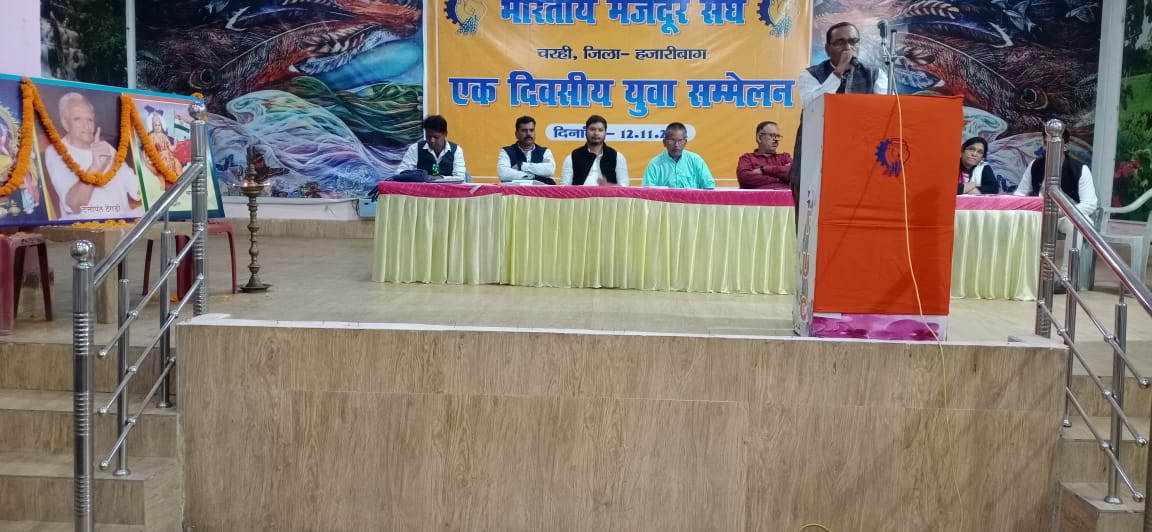 टीम एबीएन, चरही (हजारीबाग)। भारतीय मजदूर संघ का एक दिवसीय युवा सम्मेलन शनिवार को चरही आॅफिसर्स क्लब में किया गया। कार्य की अध्यक्षता संघ के जिलाध्यक्ष नवीन कुमार सिन्हा और संचालन जिला मंत्री नीरज कुमार सिंह ने किया। जबकि बतौर मुख्य अतिथि प्रदेश अध्यक्ष एसएन सिंह थे। कार्यक्रम की शुरुआत दीप प्रज्वलित और दतोपंत ठेंगड़ी, मां भारती एवं भगवान श्री विश्वकर्मा जी की तस्वीर पर माल्यार्पण कर की गई। जिलाध्यक्ष नवीन सिन्हा ने अपने अध्यक्षीय भाषण में कहा कि युवा वर्ग लोगों भारतीय मजदूर संघ से जोड़ने का कार्य किया जा रहा है। संघ के जिला मंत्री नीरज सिंह ने कहा कि आज देश युवाओं के द्वारा ही चल सकती है। युवा देश धरोहर ही नहीं रीढ के हड्डी हैं। युवा चाहे तो भारतीय मजदूर संघ से जुड़कर देश और समाज का सेवा कर सकते हैं। मुख्य अतिथि एसएन सिंह ने कहा कि युवा शक्ति देश के महान शक्ति है। युवा ही किसी भी परिस्थिति में समाज और देश को बचाने का ताकत रखते हैं। उन्होंने यह भी कहा कि भगवान बिरसा मुंडा की जीवनी पर प्रकाश डालते हुए कहा कि ये पूरे देश के धरोहर थे। इनके द्वारा दिखाए गए मार्ग पर चलकर देश हित में कार्य करें। ताकि देश पूरे विश्व भर विकसित राष्ट्र के रूप उभर सके। उन्होंने कहा कि पूरे प्रदेश में संघ को शक्ति प्रदान किया जायेगा। युवा वर्ग के लोगों को संघ से जोड़ने का काम किया जायेगा तथा युवा वर्ग के लोगों रोजी रोजगार से जोड़ने का काम किया जाएगा। आगे कहा कि भ्रष्टाचार पर अंकुश लगाया जाएगा।संघ नर आगामी 17 नवम्बर को दिल्ली आंदोलन में भाग लेने का निर्णय लिया गया। सम्मेलन के अंत में विश्वजीत सिंह को संघ के जिला पर्यावरण प्रमुख बनाया गया। मौके पर दिलीप कुमार सिंह, खुलेश्वर भोगता, लक्की कांत, सुरेंद्र कुमार, स्वेता सिन्हा, ग्लैक्सी गौरव, अभिजीत सिंह, मनोज सिंह, पप्पू दुबे, सुजीत झा, वीणा मिश्रा, रितेश कुमार सिंह, सत्येन्द्र नारायण सिंह, गोपाल ठाकुर, एहसान अंसारी सहित सैकड़ों युवा वर्ग के आदिवासी महिला-पुरुष भी उपस्थित थे।