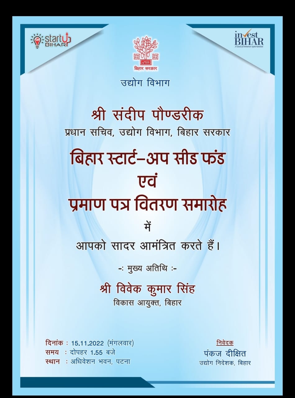 उद्योग विभाग के प्रधान सचिव संदीप पौण्डरीक ने कहा कि बिहार के सभी इंडस्ट्रियल एरिया का विकास किया जायेगा। उद्योग लगाने के लिए 9 जिलों में प्लग एंड प्ले फैसिलिटी विकसित की गई है। इंडस्ट्रियल शेड तैयार हैं, बिहार तैयार है। उद्योग लगाने के लिए इंडस्ट्रियल शेड में बहुत कम मासिक दर पर उद्यमियों को उपलब्ध कराया जायेगा। इसके लिए ऑनलाइन आवेदन बियाडा के वेबसाइट पर देना है। उन्होंने कहा कि उद्योग विभाग की योजनाओं के संबंध में युवाओं को पूरी जानकारी उपलब्ध करायें। बिहार में उद्योग के क्षेत्र में सफलता की अनेक कहानियां हैं जिनसे प्रेरणा लेकर युवा उद्योग लगाने के लिए आकर्षित होंगे।