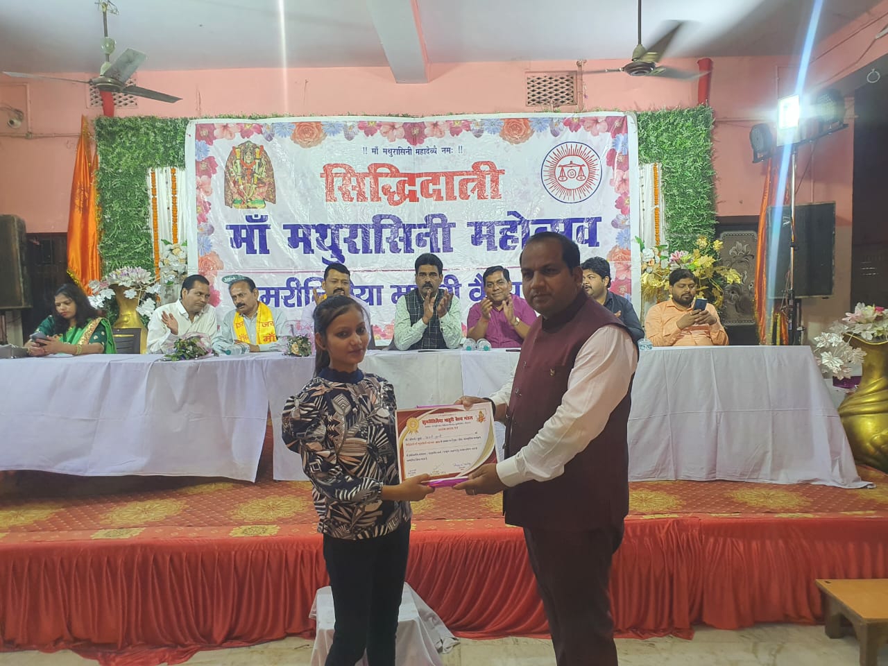 टीम एबीएन, कोडरमा। माहुरी वैश्य मंडल के तत्वाधान में आयोजित तीन दिवसीय मां मथुरासिनी महोत्सव के तीसरे श्री माहुरी भवन में समाज के प्रतिभावान विद्यार्थियों व सदस्यों के लिए सम्मान समारोह का आयोजन किया गया।