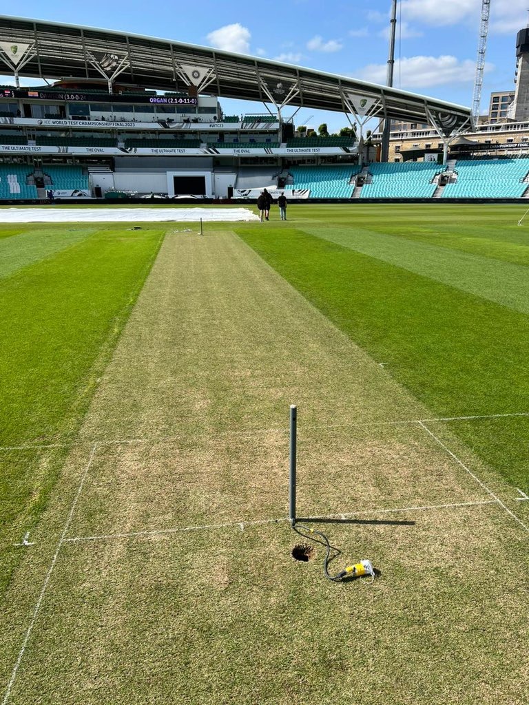 उसे न्यूजीलैंड ने परास्त किया था। टीम इंडिया की नजर इस बार खिताब अपने नाम करने पर होगी। दोनों टीमें ओवल पहुंच गयी हैं। तैयारियों के बीच पिच की पहली तस्वीर सामने आयी है। ओवल की पिच को देखकर बल्लेबाजों के अंदर खौफ बैठ गया होगा। वहीं, गेंदबाजों का मन खुश हो गया होगा।