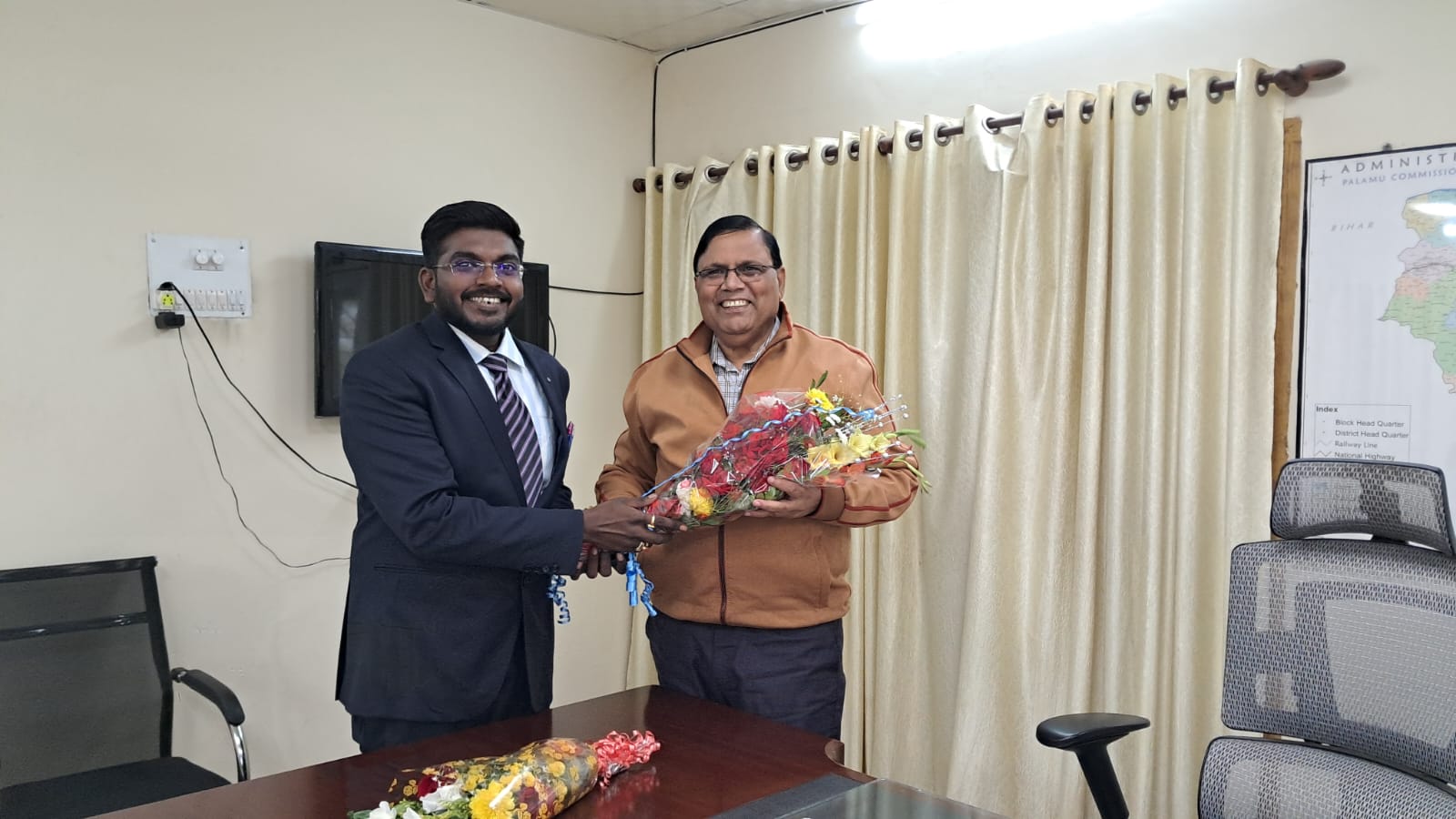 टीम एबीएन, पलामू। प्रमंडलीय आयुक्त श्री दशरथ चंद्र दास (भा.प्र.से.) से आज पलामू के उप विकास आयुक्त रवि आनंद ने शिष्टाचार मुलाकात की। डीडीसी आयुक्त कार्यालय पहुंचकर आयुक्त से मिले।