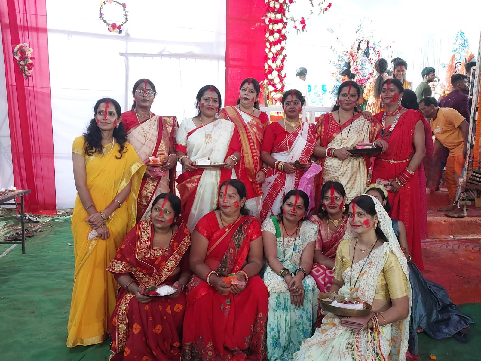 टीम एबीएन, रांची। श्रीश्री सार्वजनिक बंगाली दुर्गा पूजा समिति, धुर्वा थाना के पीछे बस स्टैंड में आयोजित दुर्गा पूजा पंडाल में पारंपरिक रीति रिवाज के साथ मां दुर्गा को विदाई दी गयी। मौके पर महिलाओं ने सिंदूर खेला भी किया, जिसमें मां दुर्गा को सिंदूर लगाने के पश्चात एक दूसरे को भी सिंदूर लगाकर अखंड सौभाग्य की कामना की गयी।