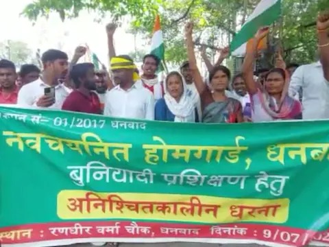 टीम एबीएन, धनबाद/रांची। धनबाद से कई होमगार्ड अभ्यर्थी झारखंड की राजधानी रांची के लिए पैदल निकल पड़े हैं। दरअसल, पिछले 5 वर्षों से 735 अभ्यर्थी अपनी नियुक्ति की मांग को लेकर आंदोलनरत हैं। ये होमगार्ड अभ्यर्थी पिछले 40 दिन से धनबाद के रणधीर वर्मा चौक पर धरना दे रहे हैं। लेकिन जब इनकी मांग पर कोई ध्यान नहीं दिया गया तो धरने पर बैठे सभी होमगार्ड अभ्यर्थी नियुक्ति की मांग को लेकर राजधानी रांची के लिए पैदल निकल पड़े। बता दें कि पिछले 5 सालों से ये होमगार्ड अभ्यर्थी अपनी नियुक्ति की मांग को लेकर लगातार आंदोलनरत है, लेकिन इनकी मांग पूरी नहीं की गई है। रांची के लिए पैदल रवाना से पहले धनबाद जिले के विधायकों, राज्य सरकार, अधिकारियों के खिलाफ नारेबाजी कर इनलोगों ने अपनी नाराजी जताई। उन्होंने कहा कि रांची पहुंच वे लोग राजभवन का घेराव करेंगे, साथ ही धरना भी देंगे। वहीं, भाषा संघर्ष समिति के सदस्य जयराम महतो ने होमगार्ड अभ्यर्थियों को अपना समर्थन देते हुए उनकी मांग जायज बताई है। जयराम महतो ने कहा कि 2017 में नियुक्ति की पूरी प्रक्रिया पूर्ण होने के बाद भी अभी तक होमगार्ड अभ्यर्थियों को प्रशिक्षण पर नहीं भेजा गया है। यहां तक कि 735 अभ्यार्थियों के बैंक अकाउंट तक खुलवाए गए। जयराम महतो के मुताबिक, निजी या सरकारी कंपनी में बैंक अकाउंट तभी खोला जाता है जब अभ्यर्थी को कर्मचारी मान लिया जाता है।