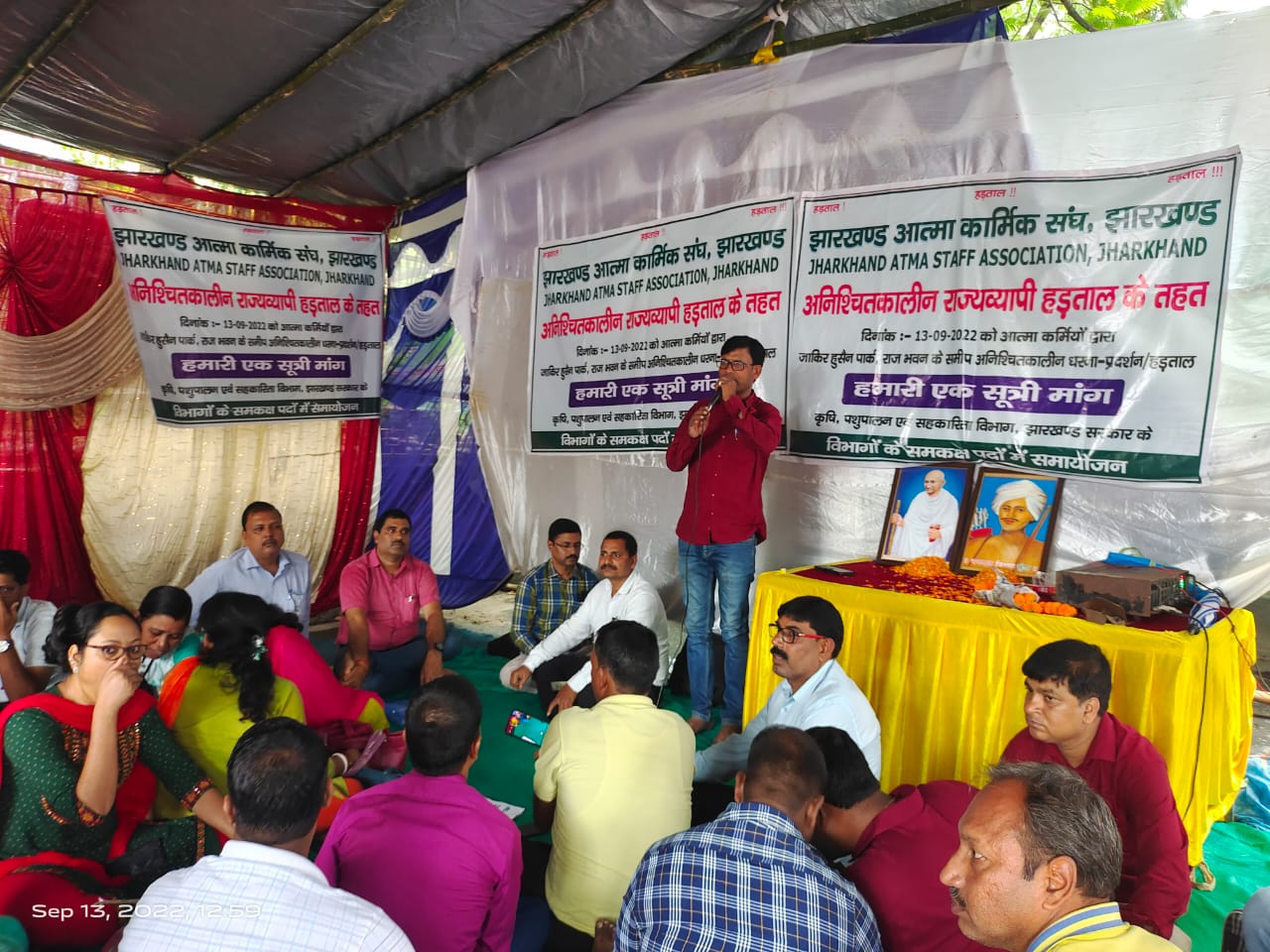 टीम एबीएन, रांची। झारखंड आत्मा कार्मिक संघ रांची के तत्वावधान में प्रदेश के सभी आत्मा कर्मी आज से राजभवन के पास अनिश्चितकालीन धरना पर बैठ गये हैं। संघ का एक सूत्री मांग है कि आत्मा में कार्यरत परियोजना निदेशक, उप परियोजना निदेशक, लेखापाल, प्रखंड तकनीकी प्रबंधक, सहायक तकनीकी प्रबंधक, कंप्यूटर ऑपरेटर, लिपिक अनुसेवक, सभी कर्मचारियों का उनकी योग्यता के अनुसार कृषि विभाग में और समकक्ष विभाग में रिक्त पदों पर समायोजन किया जाये। हम सभी आत्मा में विगत 10 से 12 वर्षों से बिना सेवा टूट के लगातार सेवा देते आ रहे हैं। हम सभी कृषि विभाग और समिति से मिलने वाले प्रशिक्षण ले चुके हैं। अर्थात पूर्णतया प्रशिक्षित और अनुभवी हैं। सरकार इसके बावजूद नई नियुक्ति करने के लिए प्रक्रिया अपना रही है। परंतु हम लोगों पर विचार नहीं किया जा रहा है। हम सभी आत्मा कर्मी लगभग 542 की संख्या में कार्यरत हैं, जबकि विभाग में 2000 से ज्यादा पद रिक्त है। रिक्ति के विरुद्ध हम लोगों का समायोजन किया जाता है, तो सरकार पर ज्यादा वित्तीय भार नहीं पड़ेगा और न ही अलग से प्रशिक्षण देने की आवश्यकता है। हम लोगों के द्वारा लगातार कृषि विभाग और अन्य विभाग का काम करवाते हैं। साथ ही विभिन्न प्रकार के मेला पर्व स्कूल परीक्षा में दंडाधिकारी के रूप में प्रतिनियुक्त करते हैं। इन सभी कार्यों का सफलतापूर्वक हम लोग कार्य करते आ रहे हैं, जिसके कारण विभाग हमेशा अपने लक्ष्य को प्राप्त करता आया है। हम सभी पूर्व में विभाग में अपनी मांग का मेमोरेंडम दिये। लेकिन अभी तक इस पर कोई ठोस कदम नहीं उठा पाया। सिर्फ आश्वासन मिल रहा है। हम लोग अजीज होकर अनिश्चितकालीन हड़ताल पर आ गए हैं जब तक मेरा समायोजन नहीं होता है। मणिपुर राज्य में जिस प्रकार सरकार के द्वारा सभी आत्मा कर्मी का नियमितीकरण किया गया, इसी प्रकार इस लोक कल्याण वाली सरकार से उम्मीद है कि मणिपुर के तर्ज पर हम लोगों का धारित योग्यता के अनुसार समायोजन किया जाए। मौके पर अध्यक्ष मोतीलाल रजक, उपाध्यक्ष दीनानाथ भगत, सचिव राजन मिश्रा, अंजीव कुमार श्रीवास्तव कोषाध्यक्ष, शिव नारायण गोप मीडिया प्रभारी, सुधीर कुमार, आयोजक सहित 400 से अधिक कर्मी धरना में उपस्थित हुए।