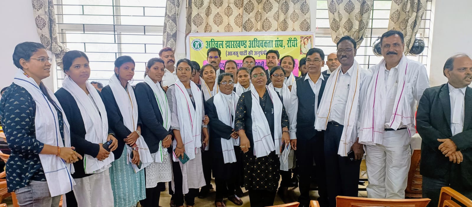 टीम एबीएन, रांची। अखिल झारखंड अधिवक्ता संघ के तत्वावधान में आज न्यू बार भवन के प्रथम तल्ला पर विधिवेता ,पूर्व सांसद बिनोद बिहारी महतो की 100 वीं जयंती एवं लोक सभा और राज्यसभा से 33 प्रतिशत महिला आरक्षण बिल पारित किये जाने की खुशी में रांची बार की महिला अधिवक्ताओं को अंगवस्त्र देकर सम्मानित किया गया।