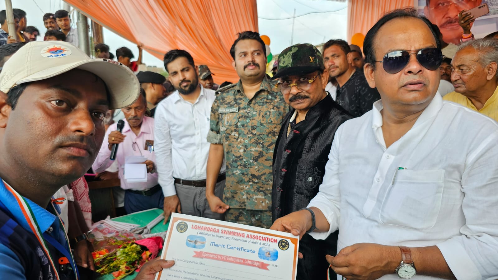 कार्यक्रम में राज्य के ग्रामीण विकास और पंचायती राज्य मंत्री, वित्त मंत्री सह संसदीय कार्य मंत्री डॉ रामेश्वर उरांव, मनिका के विधायक रामचंद्र सिंह, पूर्व सांसद धीरज प्रसाद साहू, लोहरदगा के जिला परिषद अध्यक्ष रीना कुमारी, पुलिस कप्तान हारिस बिन जमां, प्रभारी उपायुक्त सह- डीडीसी दिलीप प्रताप सिंह शेखावत, सिविल एसडीओ अमित कुमार,नगर पर्षद प्रशासक मुक्ति कीड़ो,विजय कुमार ,बड़ी संख्या में गण्यमन नागरिक, स्विमिंग एसोसिएशन लोहरदगा के सचिव दीपक कुमार ,वीके बालान्जिनप्पा,अधिकारी और प्रायोजक एफडी इंटरप्राइजेज के निर्देशक हाजी जब्बार उर्फ जबरुल अंसारी संदीप मिश्रा सेमत शहर के प्रबुद्ध नागरिक और 10000 से अधिक दर्शन तालाब के चारों ओर मौजूद थे।