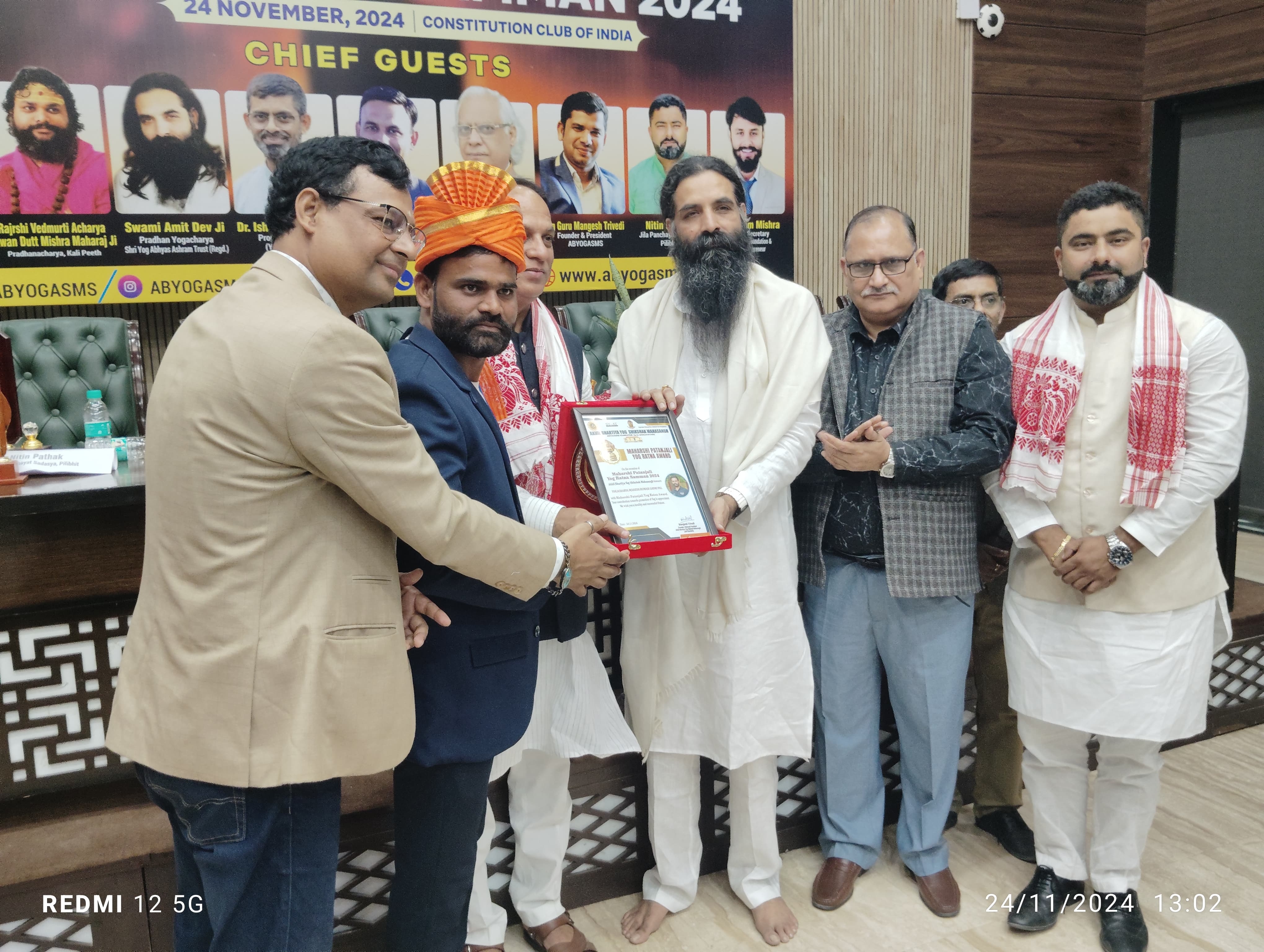 एबीएन हेल्थ डेस्क। भारत सरकार के आयुष विभाग के अंतर्गत कार्य करने वाली योग के क्षेत्र में संस्था अखिल भारतीय योग शिक्षक महासंघ द्वारा राष्ट्रीय स्तर पर महर्षि पतंजलि योग रत्न सम्मान समारोह का आयोजन भारत की राजधानी नई दिल्ली के संविधान सभागार भवन मै 24 नवंबर को आयोजित किया गया।