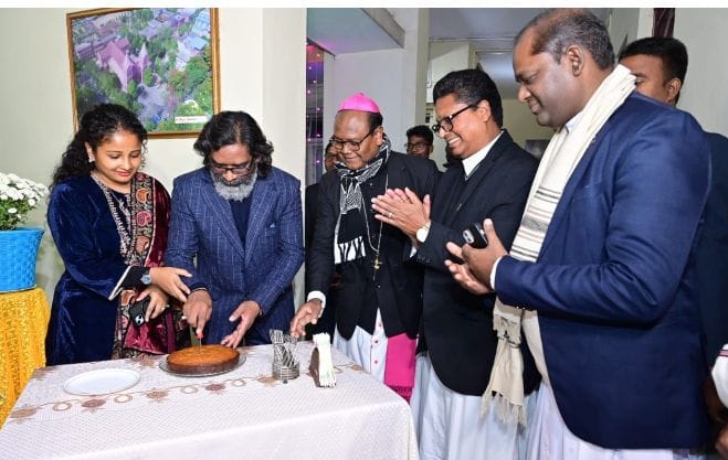 पुरुलिया रोड स्थित ईसाई धर्म गुरु आर्चबिशप हाउस में क्रिसमस की बधाई देने के लिए तांता लगा हुआ है। मुख्यमंत्री हेमंत सोरेन भी आज अपनी पत्नी कल्पना सोरेन के साथ आर्च बिशप हाउस पहुंचे। यहां उन्होंने आर्चबिशप विंसेंट आइंद से मिलकर उन्हें क्रिसमस पर्व की शुभकामनाएं दीं। इस मौके पर मुख्यमंत्री ने केक भी काटा।