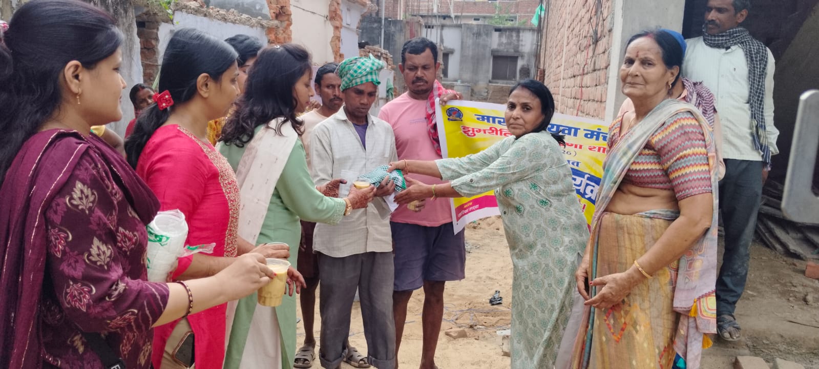 उन्होंने कहा कि कोई आलीशान भवन बनाना हो या फिर किसी भी कंपनी या उद्योग को संचालित करना हो इसके उत्पादन में इसमें मजदूरों की अहम भूमिका होती है। इस अवसर पर लगभग दो दर्जन मजदूरों को आनंद सबके लिए कार्यक्रम के तहत शरबत भी पिलाया गया। मौके पर नेहा हिसारिया, गुंजन अग्रवाल, नेहा जैन, रश्मि गुटगुटिया, प्रीति गुटगुटिया सहित अन्य सदस्य उपस्थित थे।