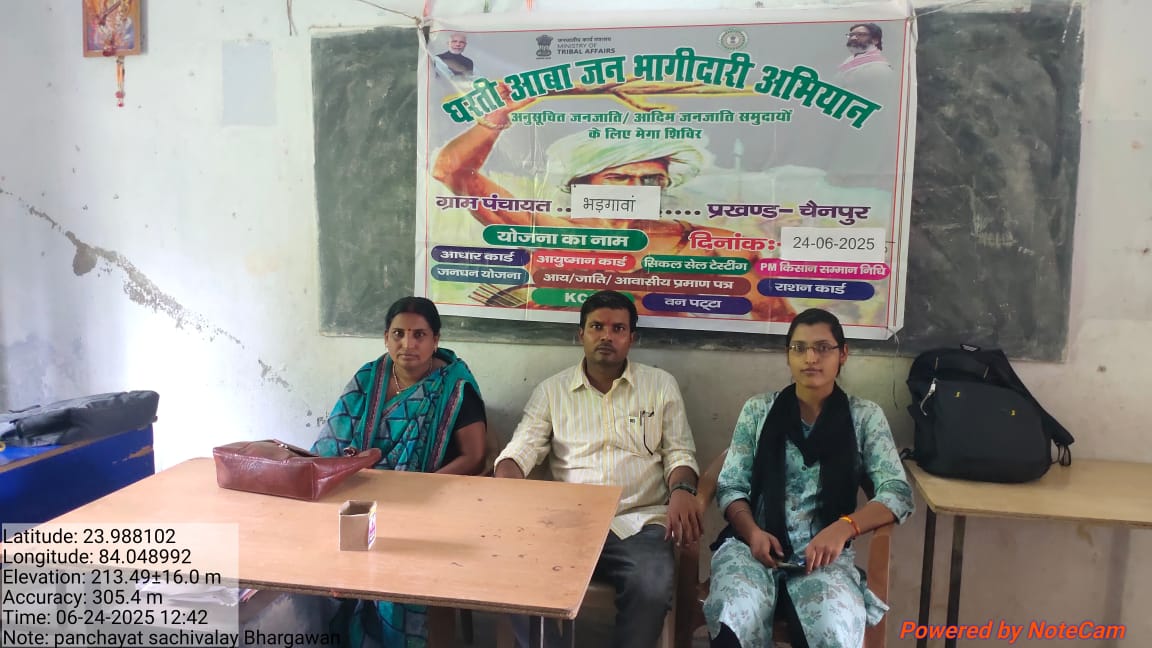 मनातू प्रखंड के ग्राम पंचायत डुमरी के पंचायत भवन में आयोजित धरती आबा जन भागीदारी अभियान के शिविर में मुखिया, मनातू के प्रखंड विकास पदाधिकारी राजकुंवर सिंह, प्रखंड कल्याण पदाधिकारी गौतम प्रसाद कश्यप,पंचायत सचिव, स्थानीय जनप्रतिनिधि एवं ग्रामीण उपस्थित हुए। इसके अलावा चैनपुर के भड़गावां, विश्रामपुर के बघमनवा में भी शिविर का आयोजन किया गया।