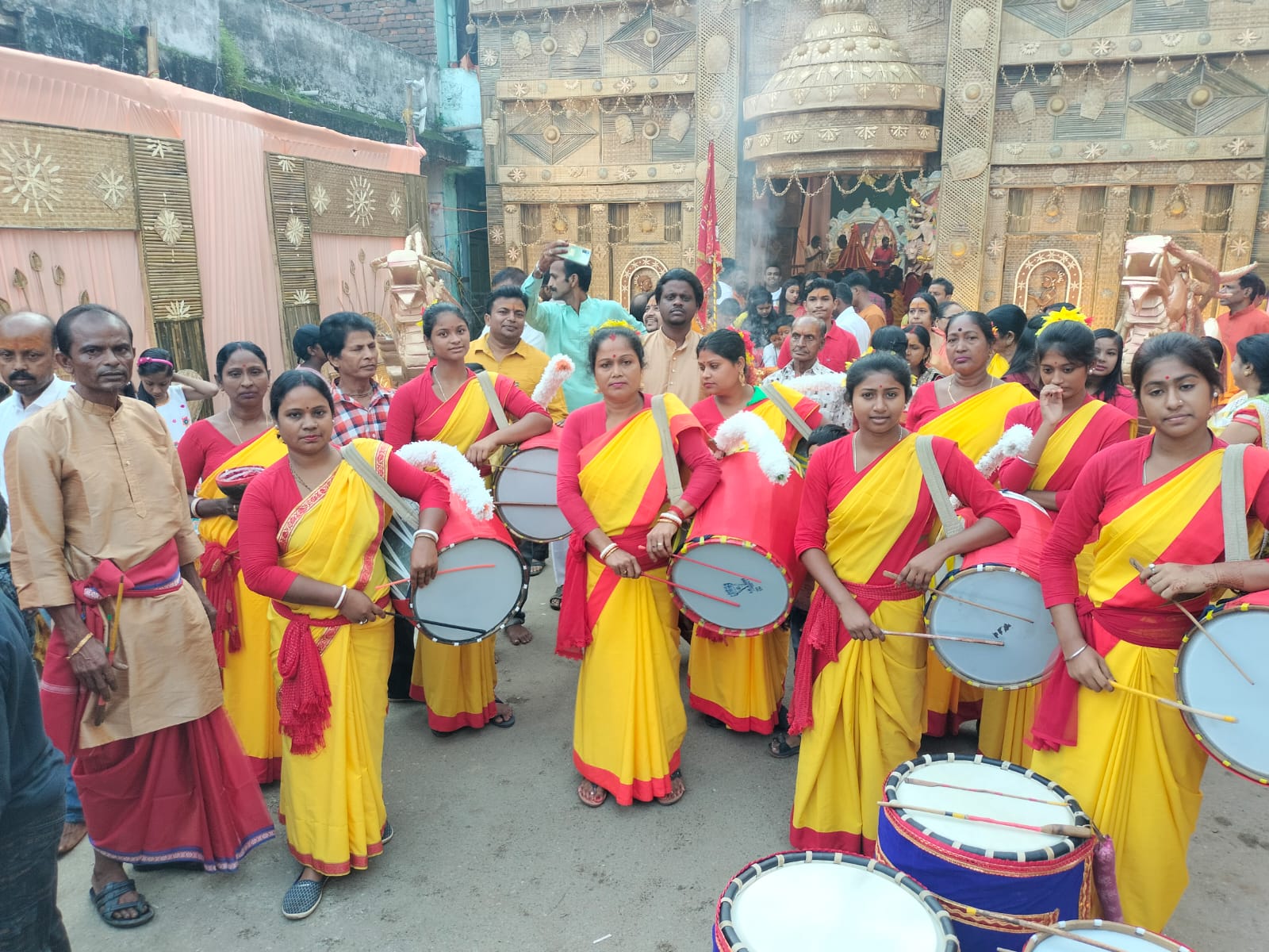 टीम एबीएन, हजारीबाग। शहर के बड़ा बाजार दुर्गा पूजा महासमिति के द्वारा महा सतमी की प्रात:काल में पूजा पंडाल से भव्य डोली यात्रा निकाली गई। डोली यात्रा में आगे-आगे कोलकाता से आई महिला ढाक की प्रस्तुति थी। तो वही डोली यात्रा के पीछे-पीछे महिलाएं लाल पीली साड़ी एवं पुरुष कुर्ता पजामा में शामिल थे। सभी डोली यात्रा के दौरान फूलों की वर्षा कर रहे थे। साथ ही सभी लोग जय माता दी की जयकारों की गूंज लगा रहे थे। डोली यात्रा पूजा पंडाल से बड़ा बाजार चौक, बंशी लाल चौक होते हुए बुढ़वा महादेव तालाब पहुंची जहां पर पूजा अर्चना की गई। पुन: डोली यात्रा वापस पूजा पंडाल पहुंची जहां पर महासमिति की पूजा अर्चना विधिवत रूप से प्रारंभ हुई। महिला ढाक की प्रस्तुति देखने के लिए लोगों ने अपने घरों से, छत से कैमरे में कैद किया उनकी बेहद आकर्षक प्रस्तुति। महिला ढाक में कुल 9 लोगों की एक टीम है जिनके साथ तीन पुरुष भी मौजूद है कुल 12 लोग हैं। वही महा समिति के द्वारा महासतमी के अवसर पर पूजा पंडाल के समीप महा भोग का वितरण किया गया जिसमें शहर के सामाजिक एवं धार्मिक कार्यों में अपनी सहभागिता सुनिश्चित करने वाले हजारीबाग यूथ विंग ने विशेष सहयोग प्रदान किया। हजारीबाग यूथ विंग के तमाम सदस्यों ने आए हुए तमाम श्रद्धालुओं के बीच भोग का वितरण किया गया, जिसमें महासमिति के भी कई सदस्य उपस्थित रहे। मौके पर अध्यक्ष प्रमोद यादव ने कहा कि वर्ष 2001 से मां दुर्गे की भव्य डोली यात्रा महासमिति निकाल रही है। डोली यात्रा के दौरान श्रद्धालुओं ने फूलों की वर्षा की। साथ ही बताया कि महासमिति सतमी अष्टमी एवं नवमी को महा भोग बंटेगी। सप्तमी का महा भोग मे हजारीबाग यूथ विंग ने विशेष सहयोग प्रदान किया। मौके पर सचिव दीप नारायण निषाद ने बताया कि इस वर्ष डोली यात्रा बेहद ऐतिहासिक रूप से संपन्न हुई। सतमी, अष्टमी एवं नवमी को संध्या में महाआरती की जायेगी। जिसमें महिला ढाक की विशेष प्रस्तुति रहेगी। मौके पर महासमिति के अध्यक्ष प्रमोद यादव, सचिव दीप नारायण निषाद, संयोजक दिलीप जायसवाल, ओम प्रकाश गुप्ता, मोहन गुप्ता, महेंद्र गुप्ता, रविंदर गुप्ता, प्रदीप जैन, गुड्डन सोनकर, पवन रावत खंडेलवाल, राजेश गुप्ता, प्रमोद खंडेलवाल, उदय शंकर गुप्ता, रितेश खण्डेलवाल, आशुतोष चौधरी, संजय यादव, पिंकू यादव, अशोक निषाद, चंद्रप्रकाश जैन, विशाल खंडेलवाल, संजय कुमार, विकास केसरी, जयनंदन सिन्हा, आलोक कुमार, अतिशय जैन, सिद्धांत मद्धेशिया, शंपा बाला, साहिल कुमार, आदित्य कुमार, अभय निषाद, मोहित कुमार, बादल कुमार सहित कई लोग मौजूद थे।