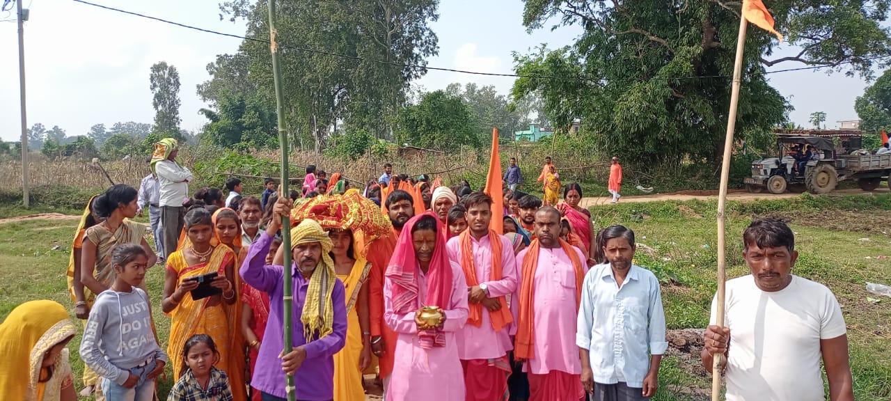 टीम एबीएन, हजारीबाग। इचाक प्रखंड के अलौंजा कला दुर्गा मंडप से नवरात्र के आज भगवती कालरात्रि की पूजा सप्तमी के दिन मां की प्राण प्रतिष्ठा एवं माता रानी का पाठ खुला। पूर्व में गंगा पूजन के लिए अलौंजा कला के माताएं बहनें एवं सार्धालुगण सैकड़ों की संख्या में मां का जयकारा लगाते हुए शामिल हुए और सिवाने नदी पंहुच कर गंगा पूजन एवं नव पत्रिका स्नान करवा कर विधिवत रूप से अचार्य ने मंडप प्रवेश कराया। जिसमें पुरोहित विजय महतो आचार्य शम्भु पाण्डेय, उपाचार्य महेन्द्र पाण्डेय, गौतम पाण्डेय सहयोगी विकास पाण्डेय, सुनिल ठाकुर एवं सैकड़ों श्रद्धालु भक्तगण जल यात्रा में शामिल होकर पूजा कर सफल बनायें। कार्यक्रम को सफल बनाने में पूजा समिति के अध्यक्ष फुलेशवर मेहता, सचिव प्रकाश दास, कोषाध्यक्ष बंसत मेहता, अलौंजा खुर्द पंचायत के मुखिया सकेन्द्र प्रसाद मेहता, बासुदेव महतो, रंजन मेहता, अमर मेहता, संतोष मेहता, बलराम महतो, राजकुमार यादव, विनय मेहता, किशोरी महतो, बालेश्वर महतो, कुलेश्वर मेहता श्री राम ठाकुर, तिलेश्वर प्रजापति, प्रकाश प्रजापति, करीना कुमारी, मनीषा कुमारी, निशा कुमारी, मुस्कान कुमारी, नितू कुमारी, क्रांति कुमारी, खुशबू कुमारी, रीता देवी इत्यादि सभी ग्रामीण वासियों योगदान रहा।