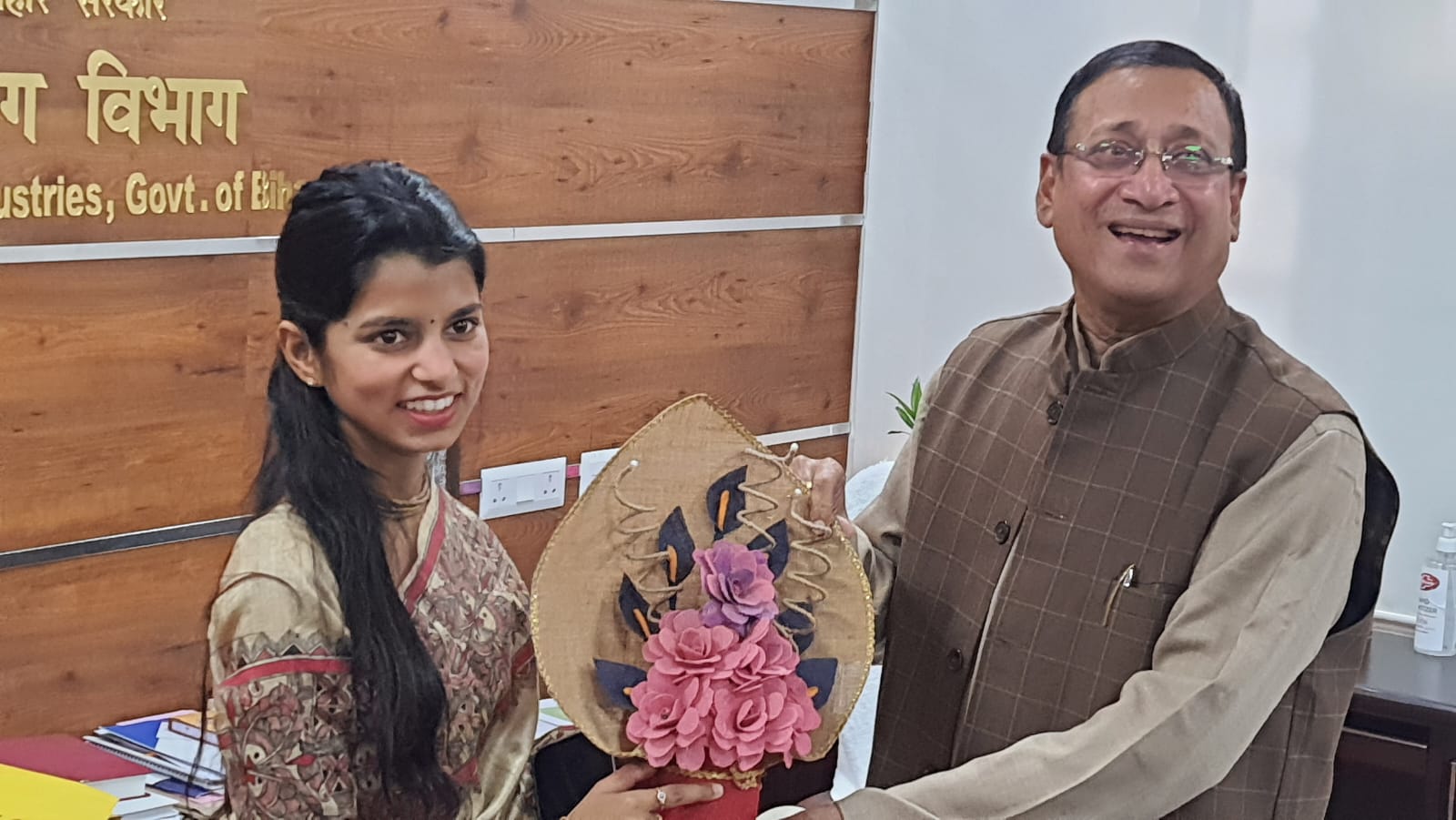 टीम एबीएन, पटना/मधुबनी। प्रसिद्ध लोक गायिका और मिथिला की बेटी मैथिली ठाकुर ने बिहार राज्य खादी, हस्तशिल्प और हैंडलूम का ब्रांड एंबेसडर बनाए जाने के बाद उद्योग मंत्री समीर कुमार महासेठ से उनके कार्यालय कक्ष में मुलाकात की। उद्योग मंत्री समीर कुमार महासेठ ने मैथिली ठाकुर को बधाई देते हुए कहा कि मैथिली ठाकुर के ब्रांड एंबेसडर बनाए जाने से नई पीढ़ी के लोगों को खादी और बिहार की हस्तकला से जोड़ने में मदद मिलेगी। उन्होंने मैथिली ठाकुर को संगीत नाटक अकादमी का बिस्मिल्लाह खां युवा पुरस्कार प्राप्त होने पर बधाई दी।