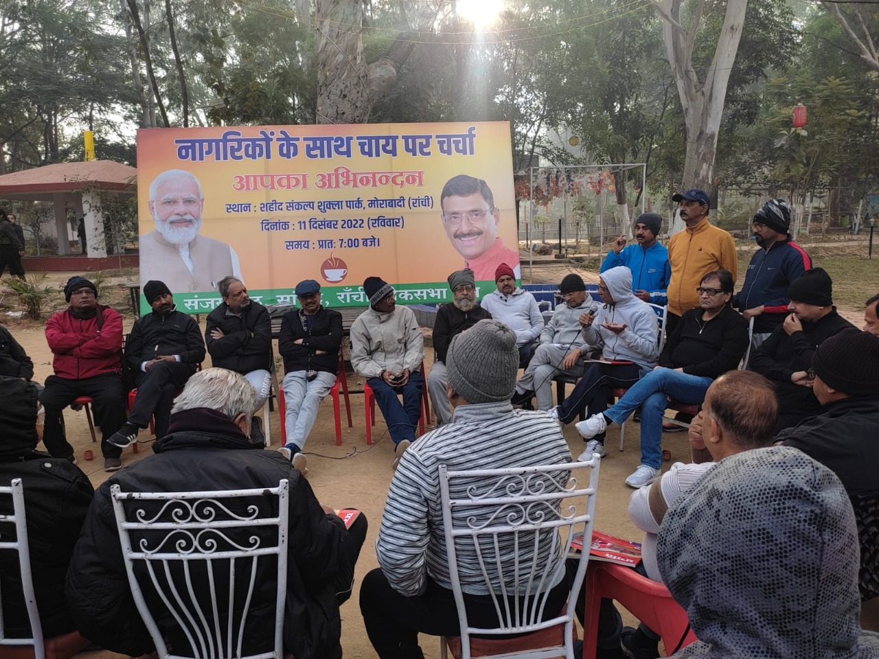 टीम एबीएन, रांची। रांची के सांसद संजय सेठ ने रविवार को मोराबादी मैदान में तीन स्थानों पर नागरिकों के साथ चाय पर चर्चा की। इस दौरान सांसद ने रांची में बेहतर कानून व्यवस्था, बेहतर नागरिक सुविधाएं मुहैया कराने, बिजली सहित अन्य मुद्दे, जो रांची को एक बेहतर शहर बना सकते हैं, इस पर सभी नागरिकों के विचार लिये।