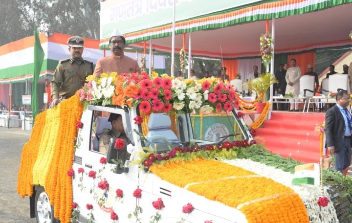 टीम एबीएन, देवघर/ रांची। देवघर के मुख्य समारोह स्थल केकेएन स्टेडियम में गणतंत्र दिवस धूमधाम से मनाया गया. मौके पर मंत्री हफीजुल हसन ने झंडोत्तोलन किया और परेड की सलामी ली। इस अवसर पर विभिन्न विभागों के द्वारा झांकियां भी निकाली गयी।